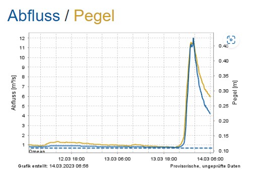 Unser Dorfbach ist auch sehr rasch angesprungen, Böden sind vielleicht jetzt schon etwas gesättig oder es war einfach zu viel auf einmal.