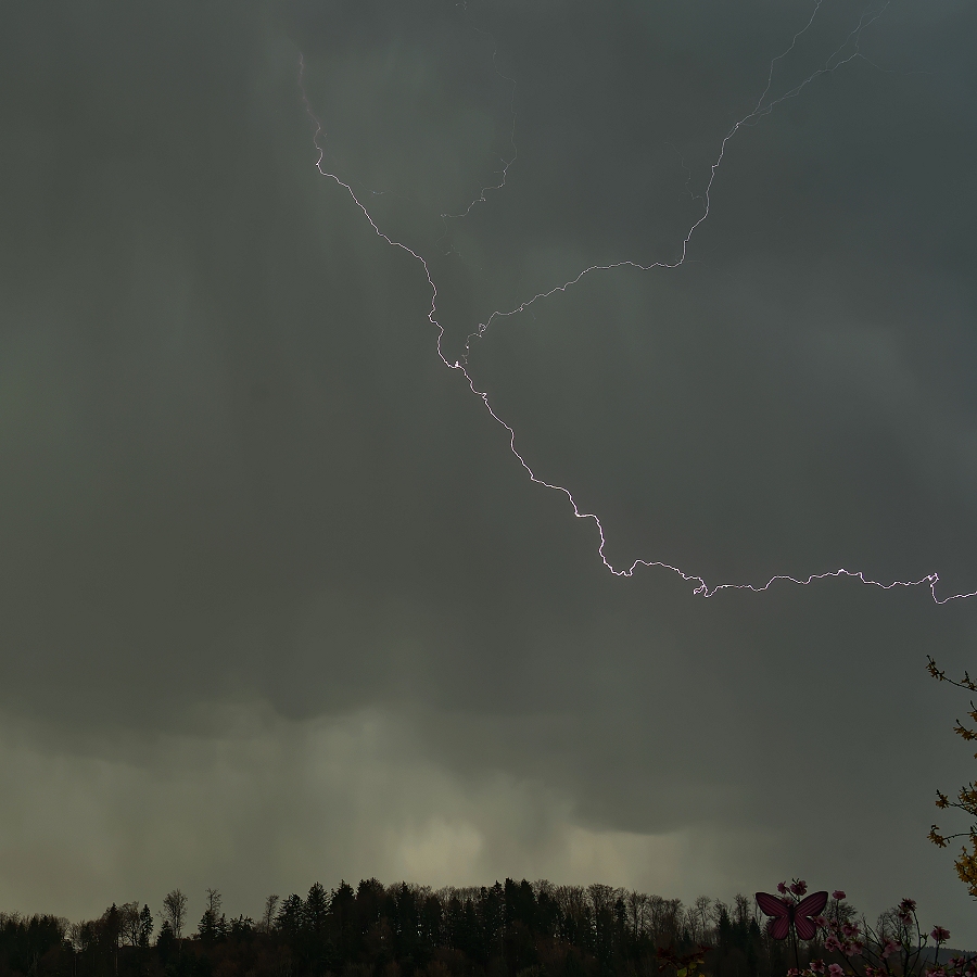 Das war bestimmt das längste und heftigste Märzgewitter, welches ich je erlebt hatte. Die Lautstärke der Nahrumpler war zwischendurch beachtlich, allercings blieben sichtbare Blitze lange eine Rarität. Erst gegen Schluss zogen die Zellen im Süden durch, und prompt gab es Treffer auf dem Kamerachip. Auch das für mich eine Première im März, und erst noch tagsüber. :-D