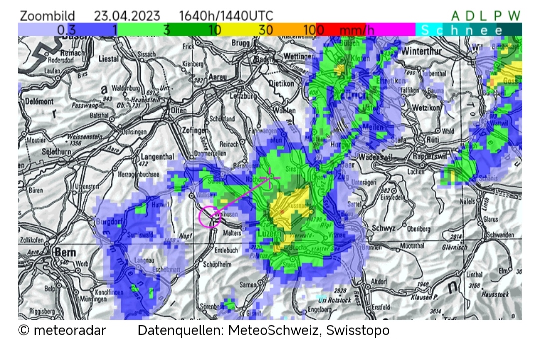 Donner in Sellenbüren um 1520, 1523 und 1525 Uhr beim Joggen. Jetzt offenbar rechtzeitig retour für den nächsten Schub (vielleicht...).