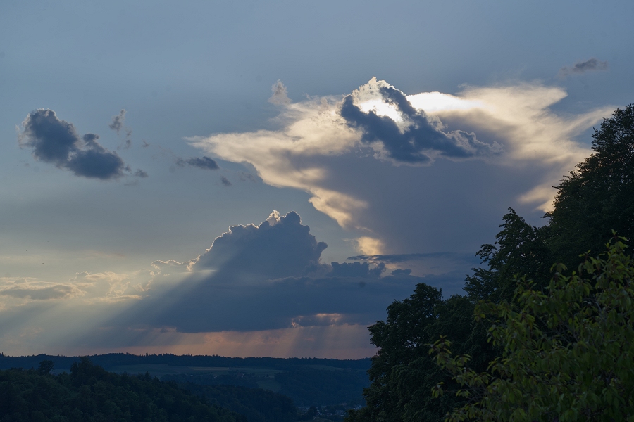 Eine Auslöse geschieht primär orografisch, also über dem Relief (Voralpen, Jura, Schwarzwald). Wie wir aber am Donnerstag erlebt haben, können die Zellen über dem Relief durchaus auch Neuentwicklungen über dem Flachland triggern, wobei sich dieser Prozess dann chaotisch fortsetzen kann. Das hat man am Donnerstag im zentralen und östlichen CH-Mittelland, vor allem aber auch über weiten Teilen Deutschlands gesehen.