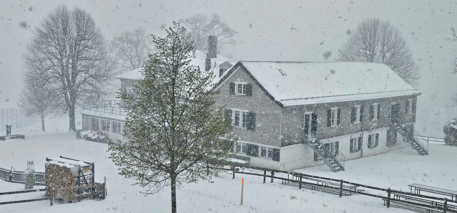 Die Kaltfront heute morgen um 3 Uhr hat, am Fuss des Uetlibergs (600m) 4 mm in kurzer Zeit hingelegt. Die Böden sind leicht weiss angezuckert.