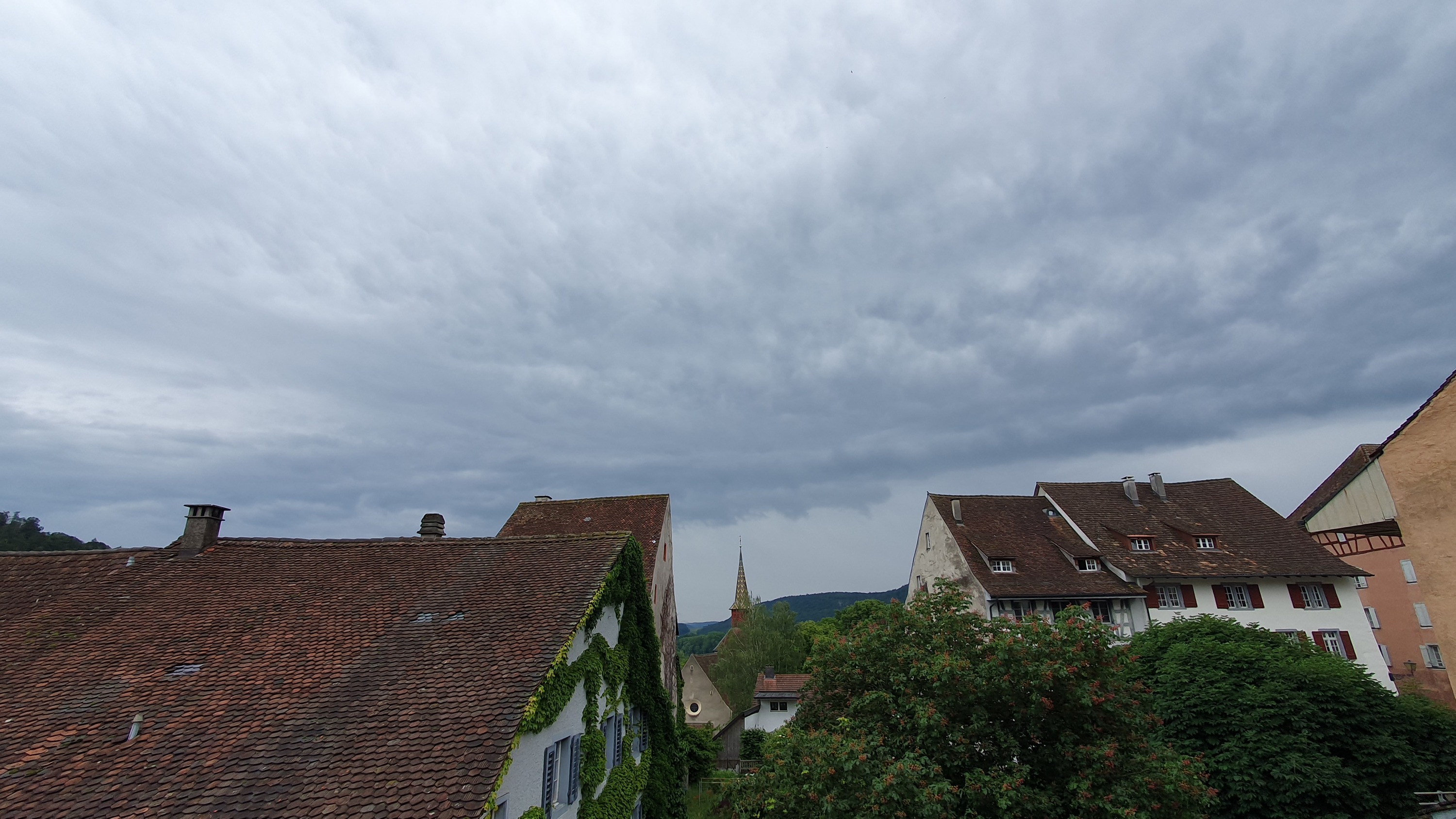 Verdunkelung des Himmels, ein paar starke Böen, heftiger Regen (3.3mm / 10 Minuten)