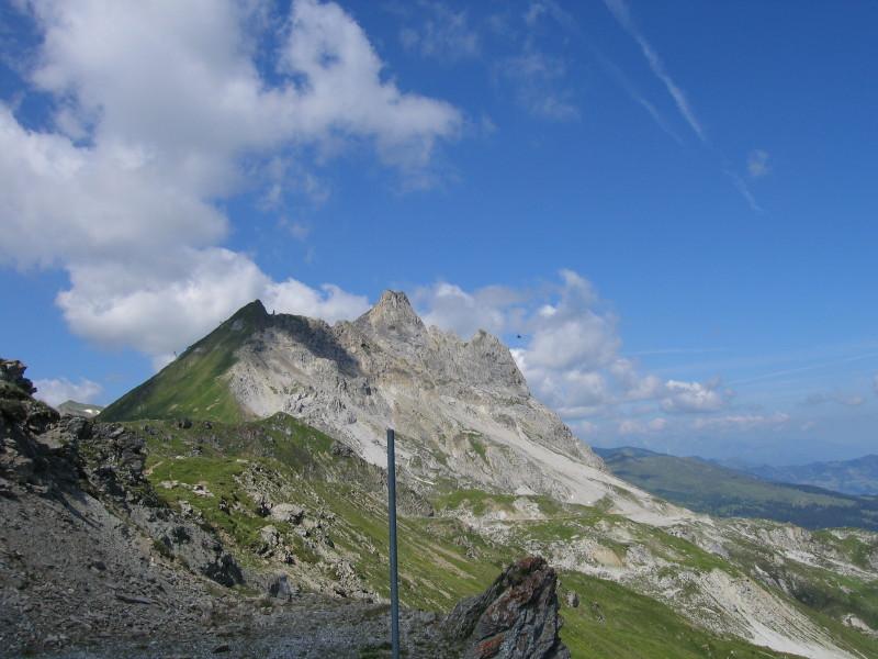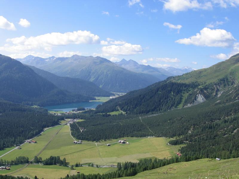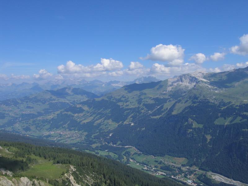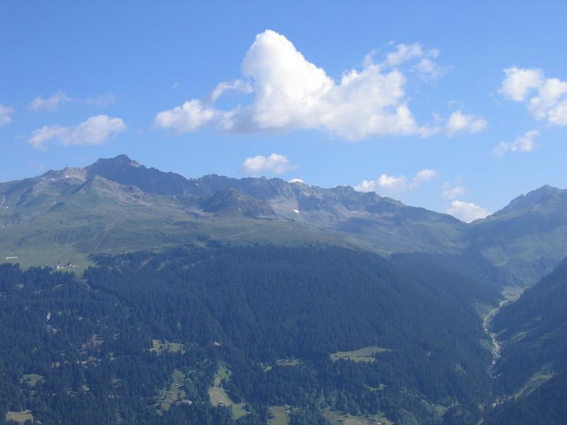 Unten Saas im Prättigau, dahinter Kreuz-Rätschenjoch und weiter hinten Rätikonkette: