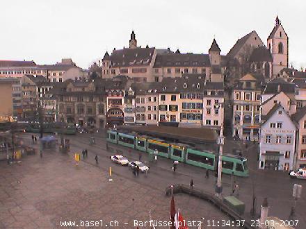 Noch eine Ergänzung zu Basel. Hier in der Innenstadt hat es überhaupt keinen Schnee. Barfüsserplatz wie Petersplatz (etwas höher) sowie die Dächer sind völlig schneefrei.