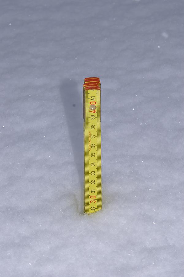 Dazu sind im Verlaufe des ersten Vormittagteils noch einmal gut 10cm gekommen, die die Gesamtschneehöhe auf 38-40cm ansteigen liessen.
