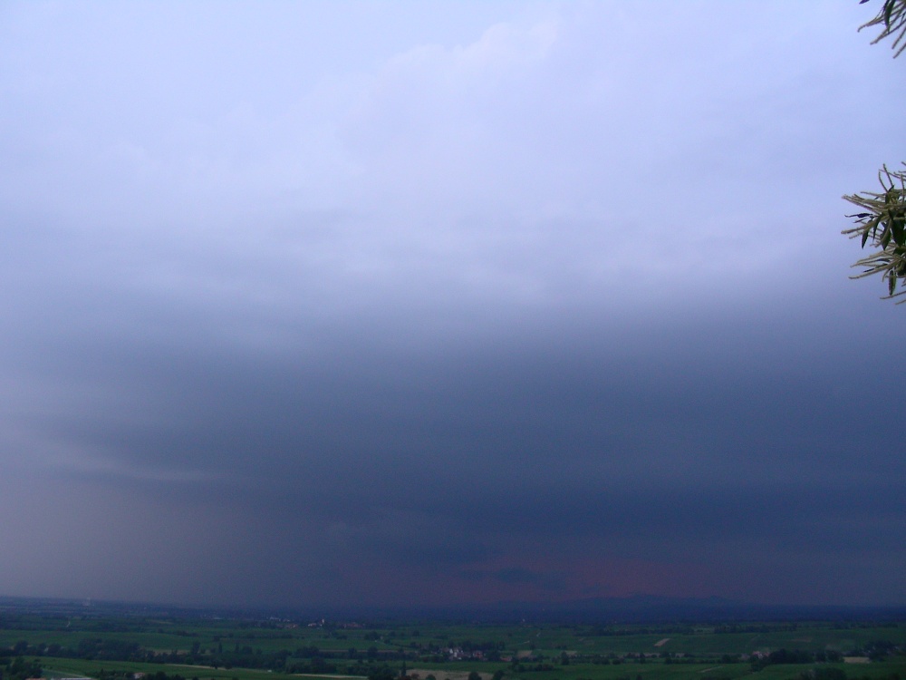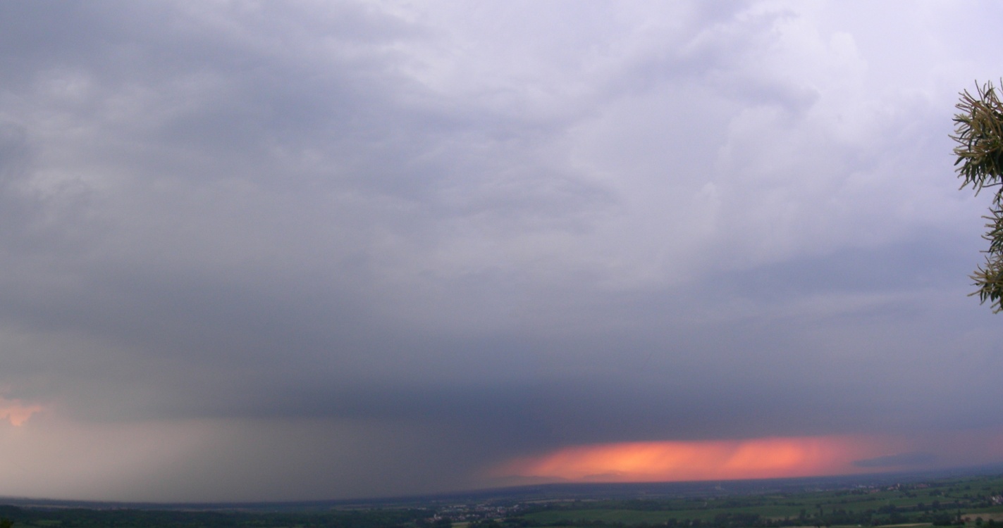 20.35 Uhr, der Split der Vogesen Zelle war deutlich zu erkennen durch das neu entstandene Niederschlagsfeld. Panorama in Richtung West-Nord: