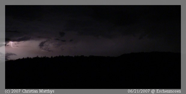 20.34 Uhr, auch hinter mir (Süden) schien sich etwas zu tun, es grummelte hin und wieder und sah verdächtig aus: