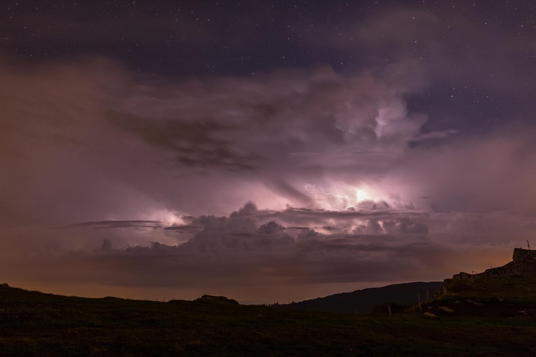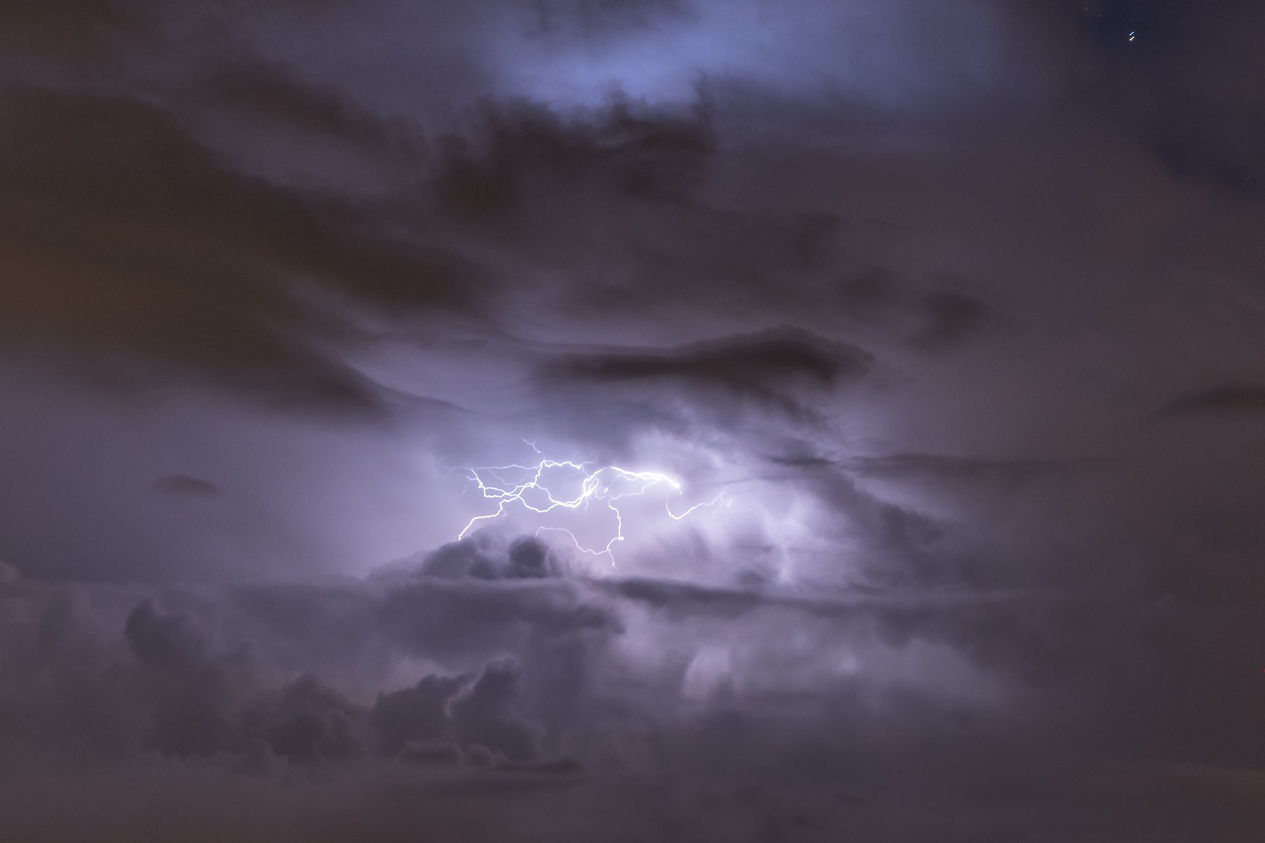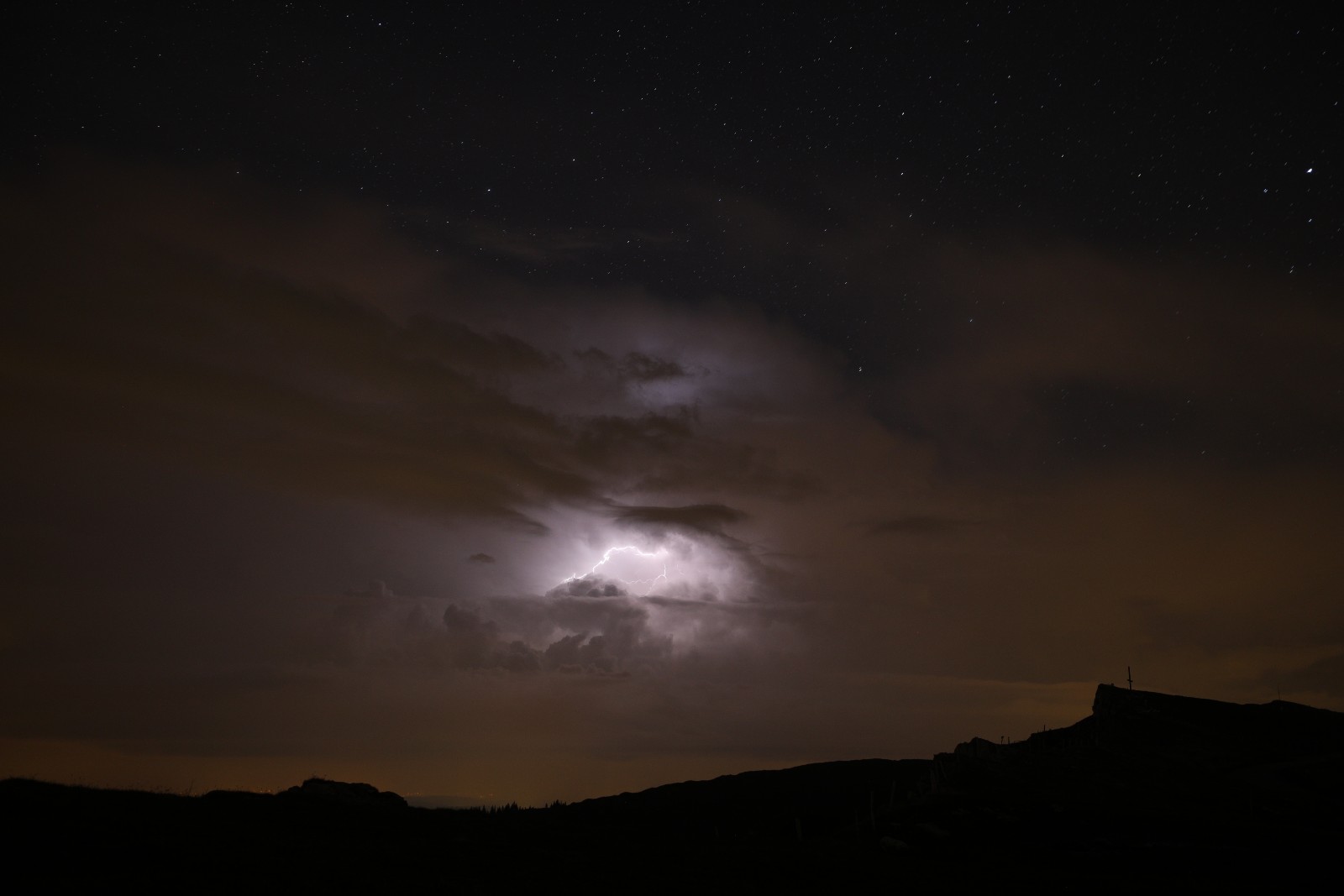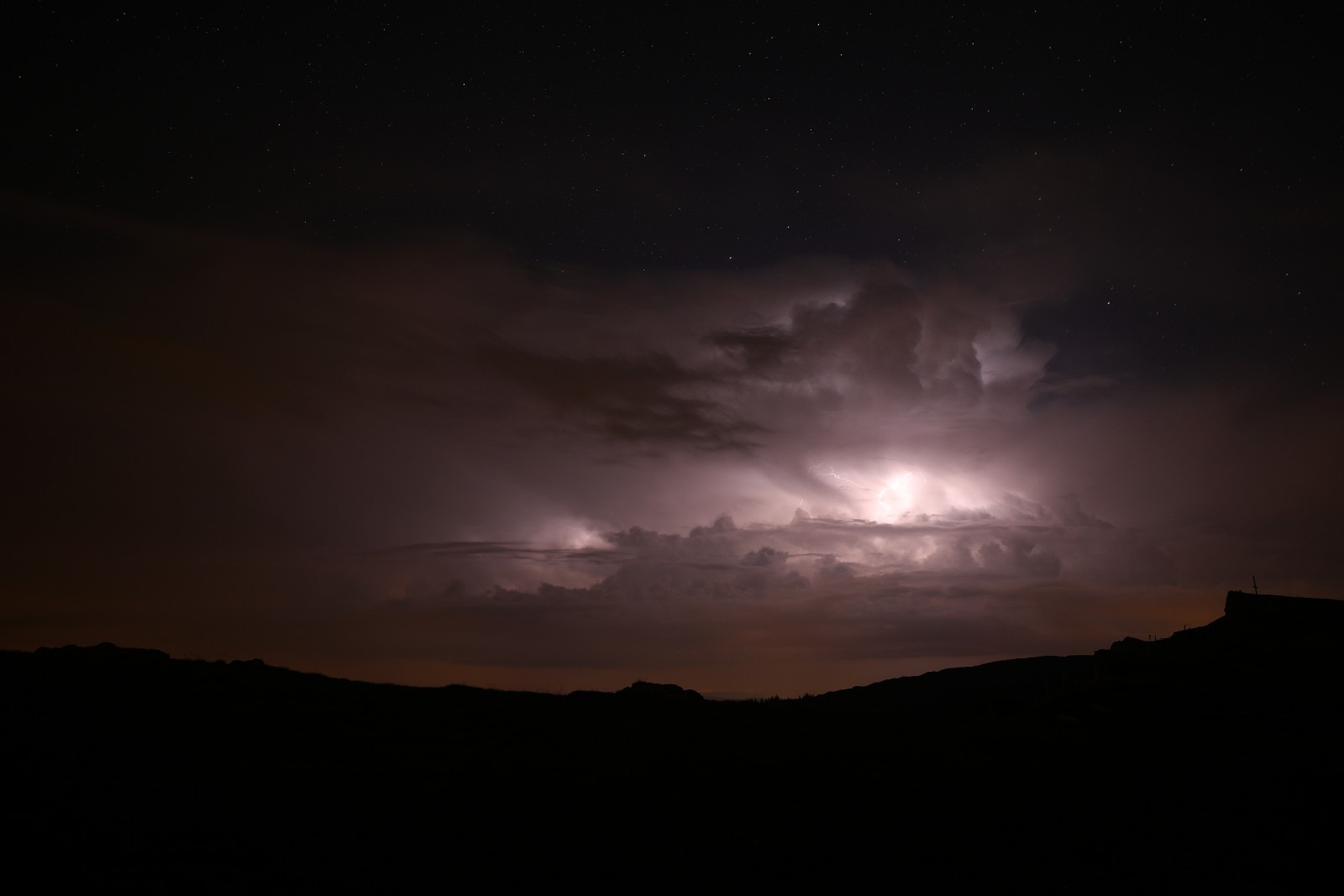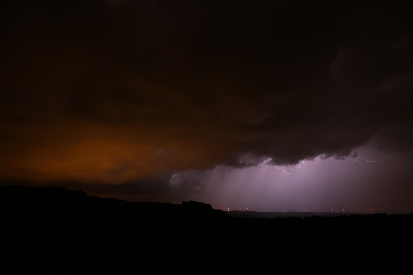 Das war auch sehr schön von unserem Standpunkt aus zu beobachten. Es wurde dunkler und die Zelle kam näher. Imposante und helle Blitze entluden sich fast im Sekundentakt. Die Zelle hatte ebenfalls rotiert. Es ging eine Zeit bis uns der Niederschlag einholte und wir zusammen gepackt haben.