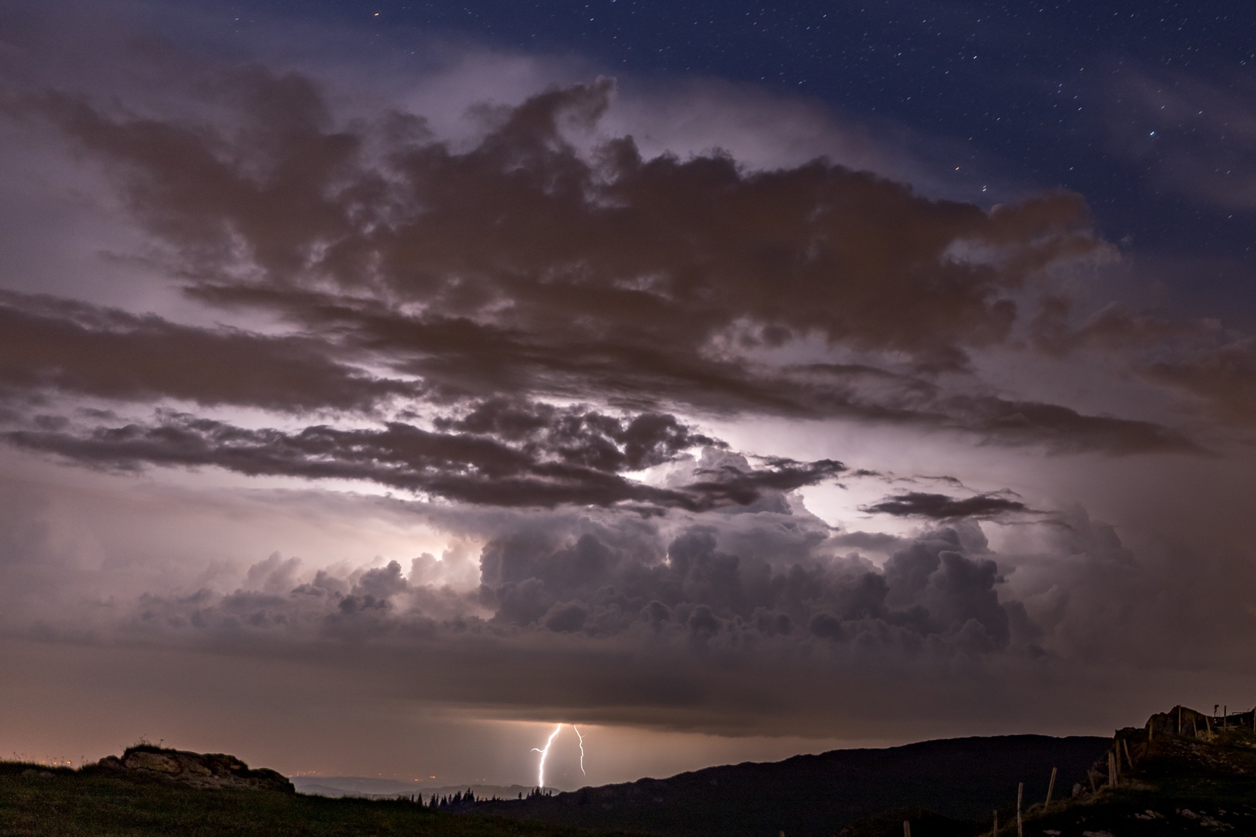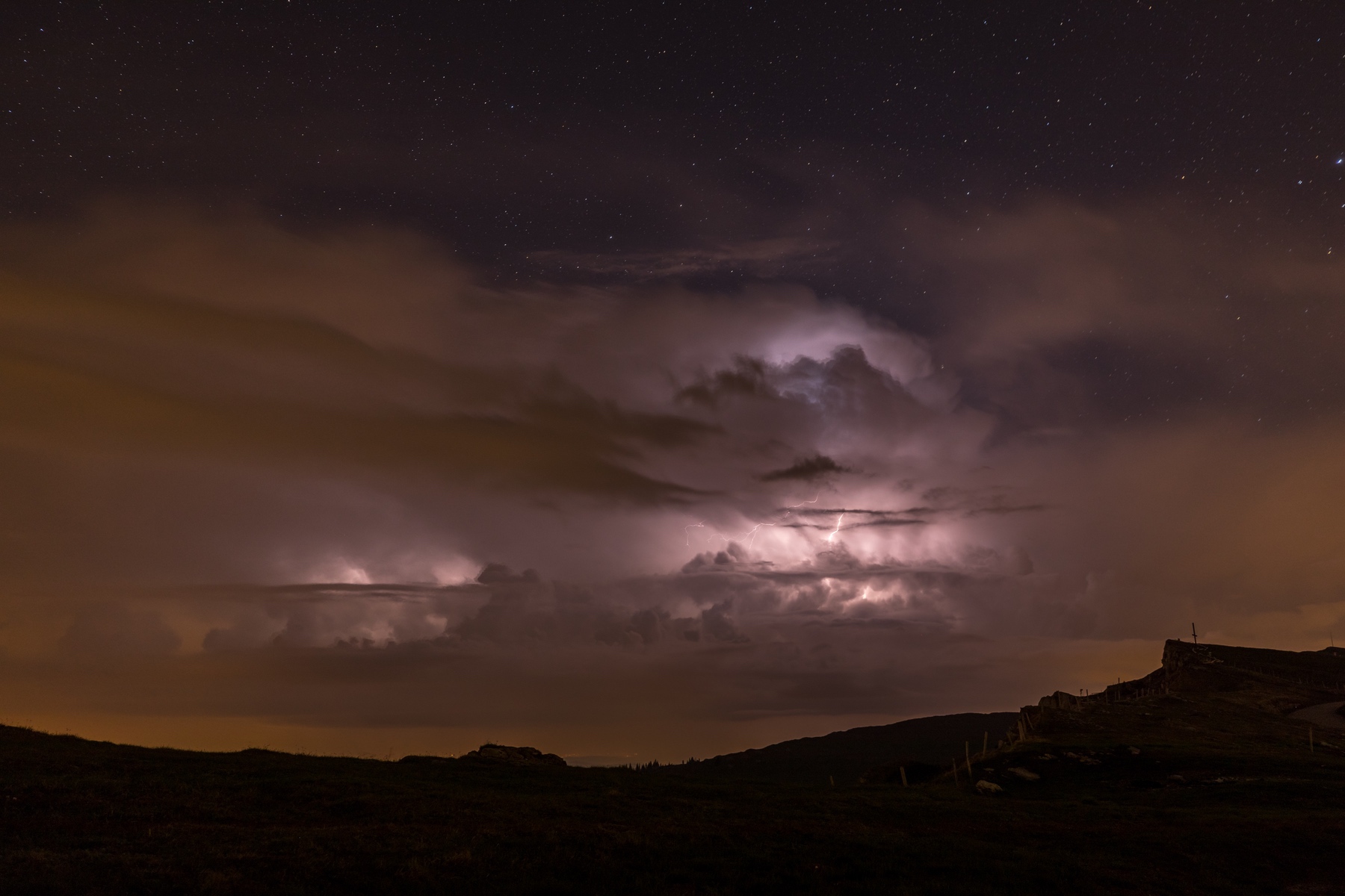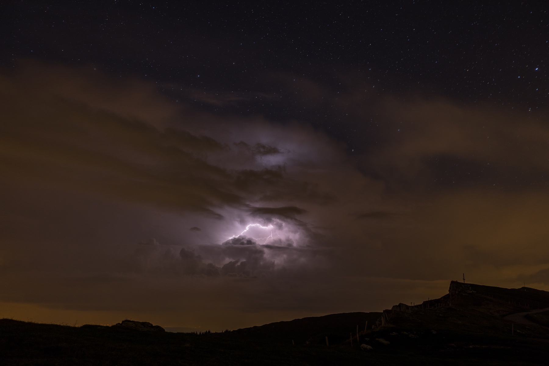 Mittlerweile haben sich nahe Schrattenfluh und Bulle zwei starke Gewitterzellen gebildet. Für diese Zellen war es sowieso schon zu spät und in den Bergen Chase ich persönlich weniger gerne.