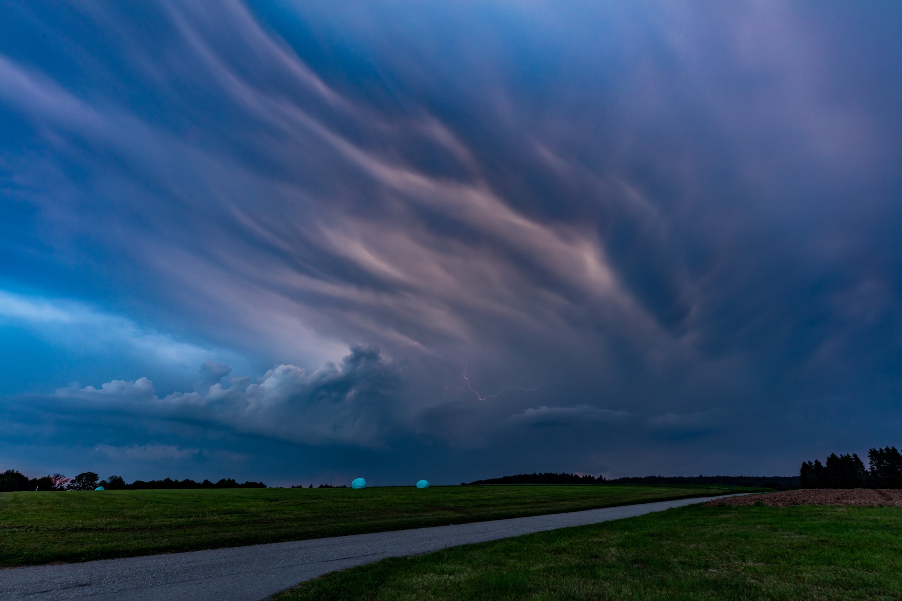 Vorne dran habe ich es nicht mehr geschafft aber mitten hinein. Der Niederschlag war ziemlich heftig, ein paar fette CGs schlugen neben mir ein, das hat geknallt und die Autoscheiben vibriert.