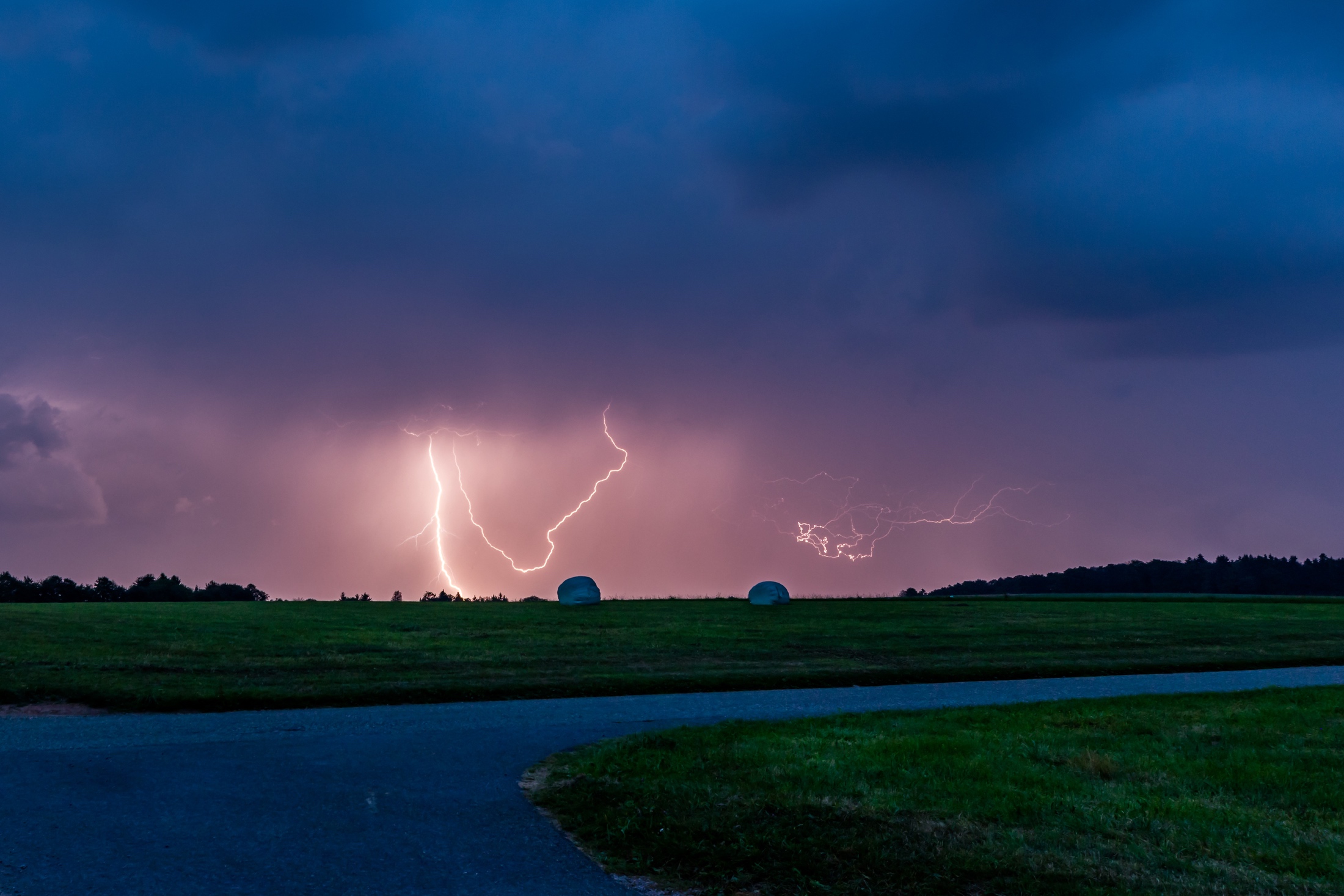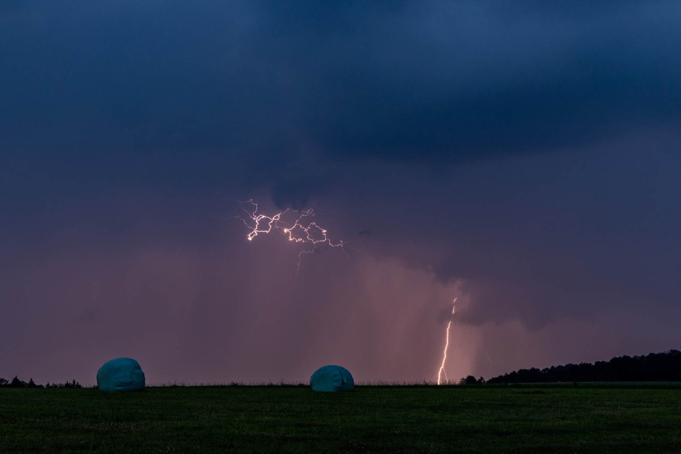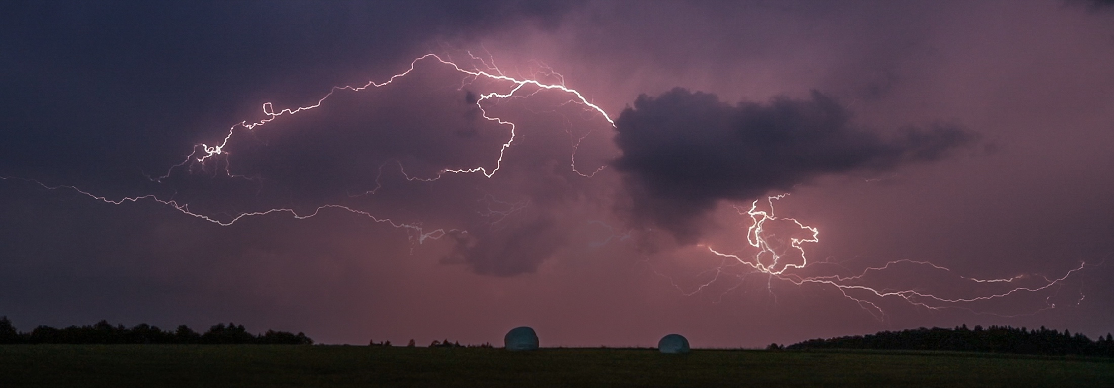 Regen gab's nur ein wenig, zog nordwestlich vorbei, die meisten Blitze - wie üblich bei solchen Shows - in den Wolken