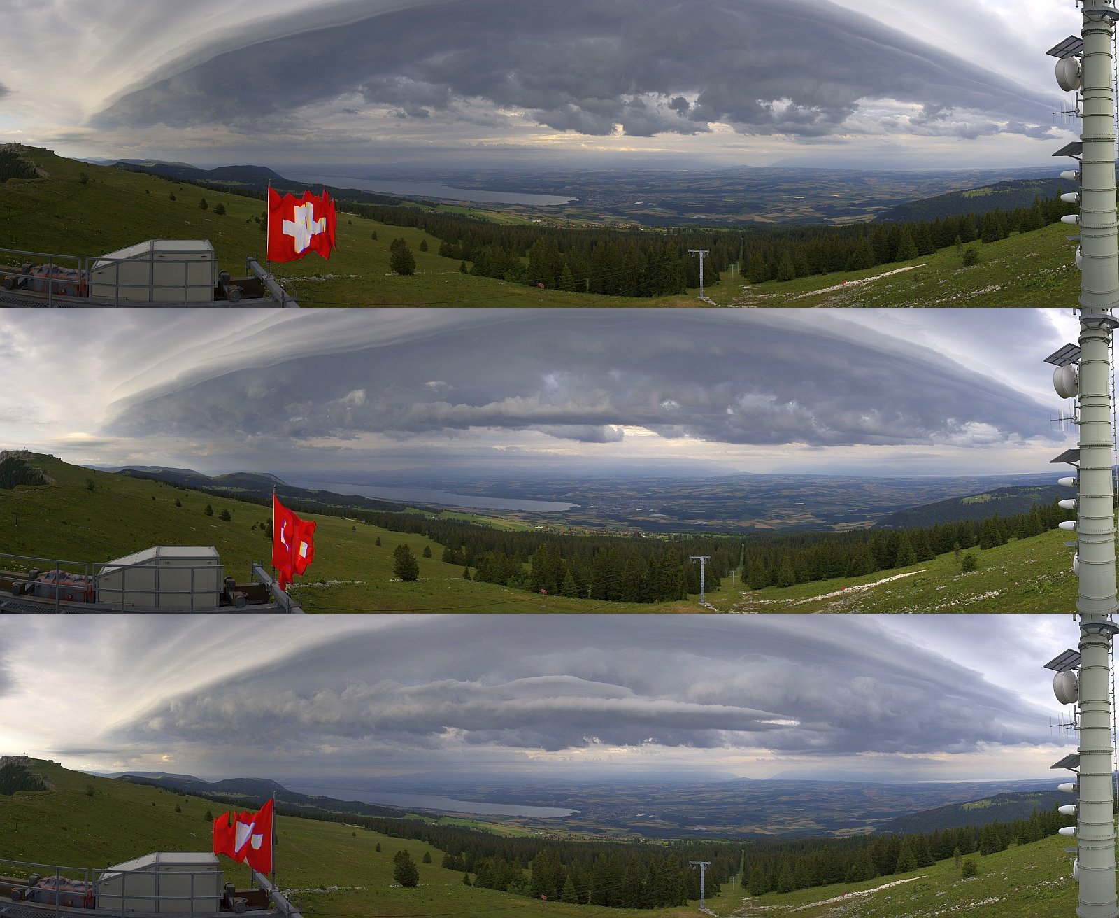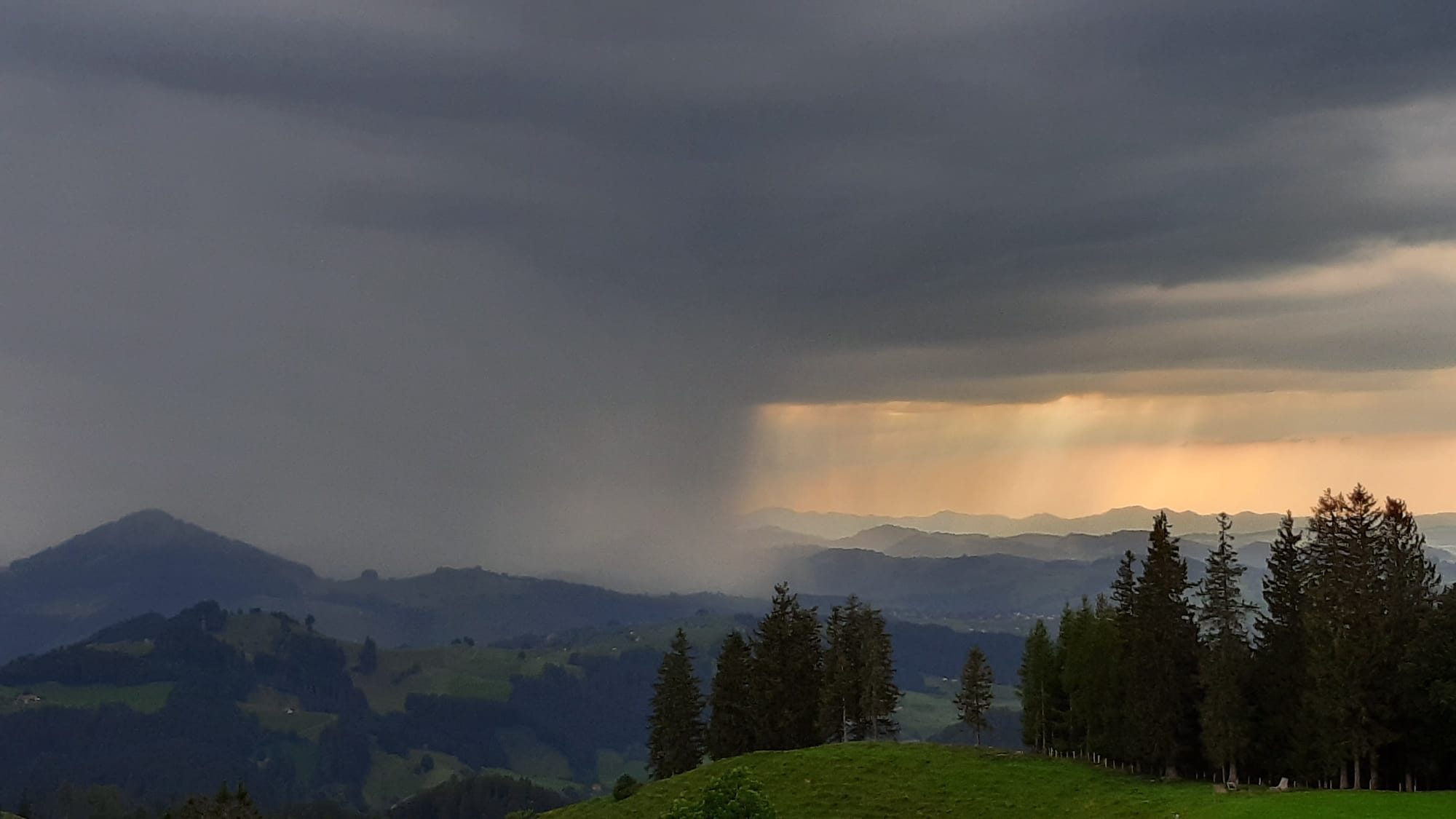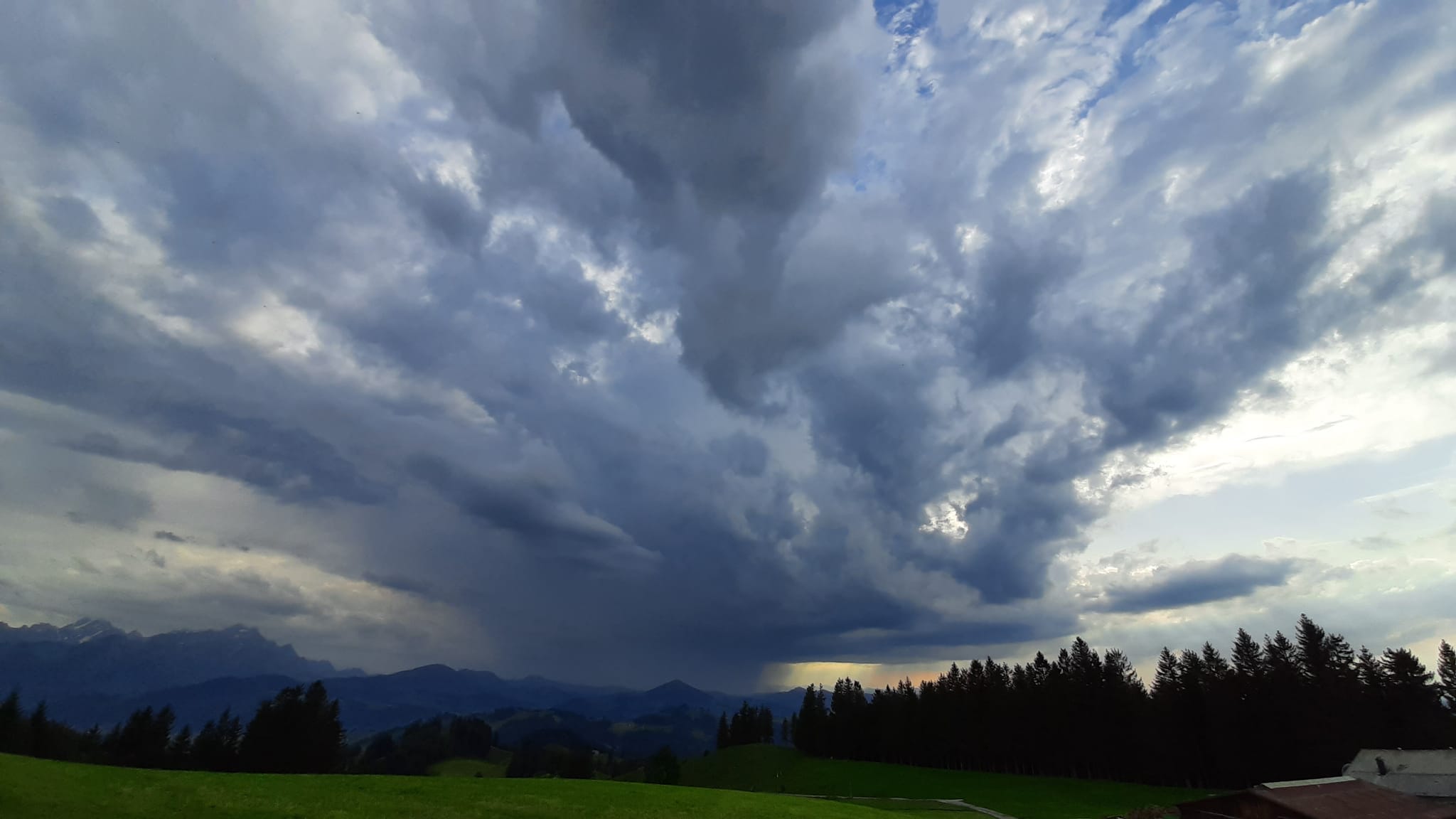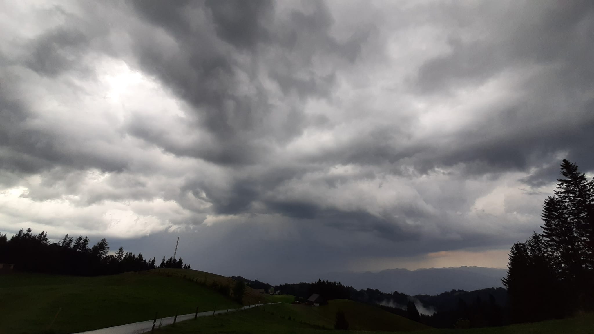 Eine besonders schöne Zelle kam gegen 19 Uhr vom Toggenburg her, Blick vom Gäbris nach Westen: