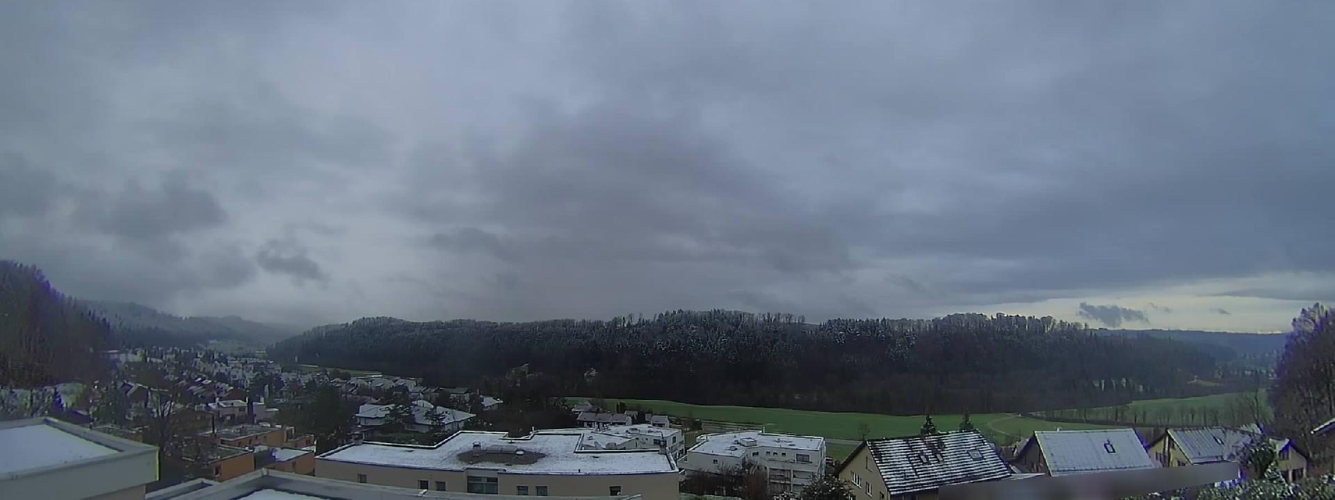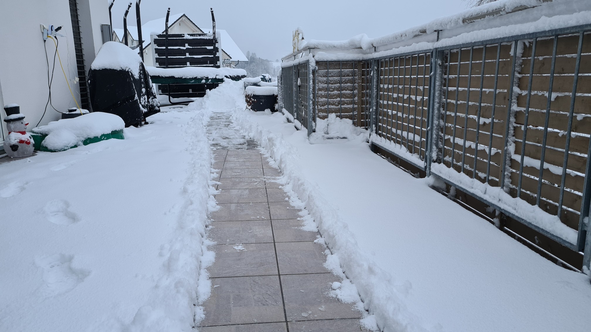 Ich war etwas enttäuscht heute Morgen. Dass es etwas eng wird, wusste ich, aber eigentlich hätte ich gedacht, dass hier in Voralpennähe noch etwas Niederschlag fällt in der kälteren Phase. Letztendlich hat der Regen um Mitternacht aufgehört und erst dann ist die Temperatur langsam zurückggegangen. Am Morgen gab es dann noch etwas Schneefall, auf den Dächern gab es eine "angezuckerte" Weihnacht. Das war dann bei 1°C auch bald wieder weg. :-X
