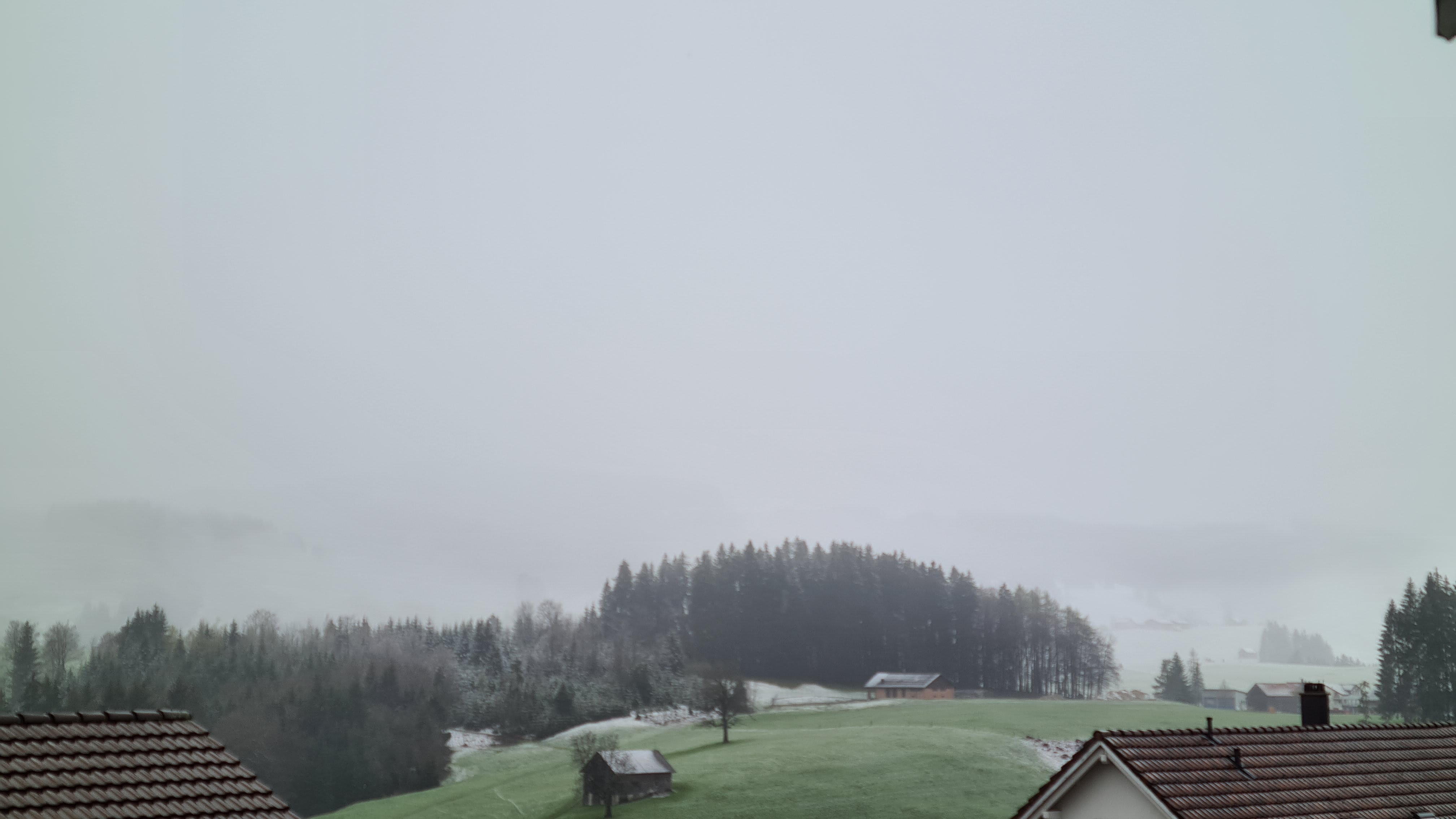 Guten Morgen die Niederschläge wurden hier wieder überschätzt es ist deutlich weniger Regen gefallen als Gestern Abend noch prognostiziert.Vorallem in der 1 Nachthälfte waren mal deutlich höhere Niederschlagsraten vorhergesagt,immerhin hst es seit gestern Morgen 23mm gegeben.Die Schneefallgrenze ist dafür tiefer,hier hat es für ein minischümlli gereicht,von dem  her warces gut das die NSR tief bliebt sonst wäre es sicher weisser geworden.Die letzden 3-4Mai Jahre hat es sicher fast jedes mal noch geschneit.Frühling wo bleibst du.