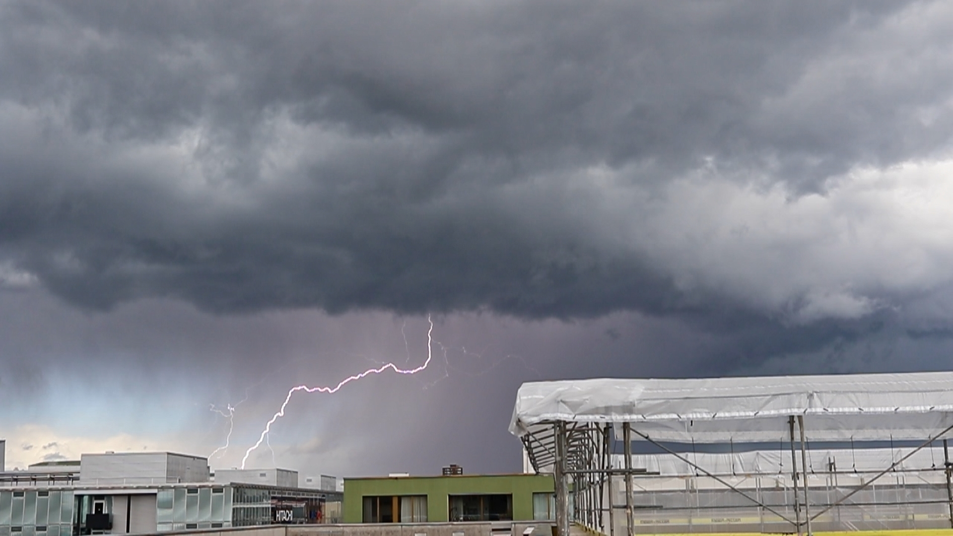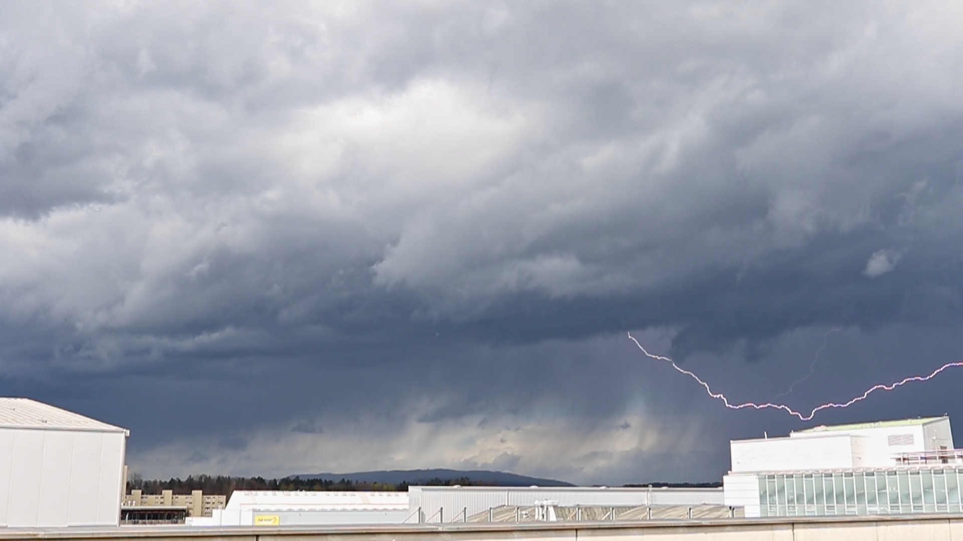 Vorbeiziehendes Gewitter hier in Oerlikon (Screenshots aus Video):