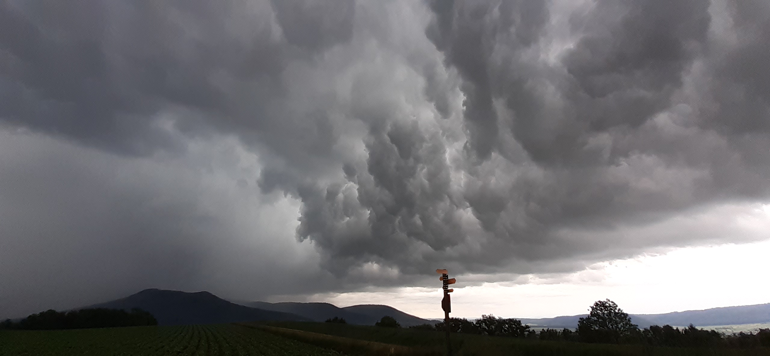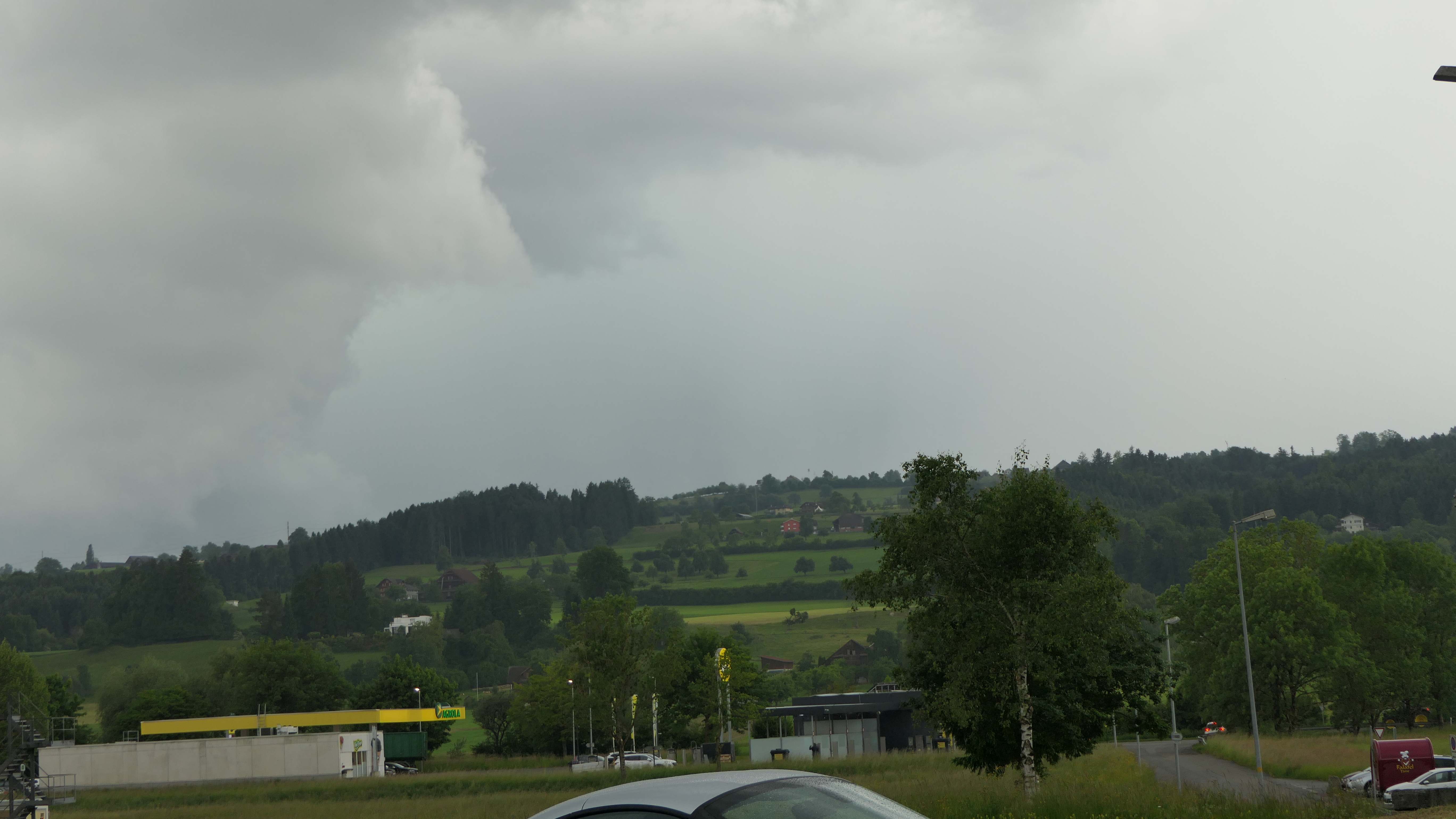Nach Feierabend bot sich mir dieses Bild. Mein Standort war Hochdorf mit Blick Richtung Sempach. Die Bewölkung hatte diese Verdächtige grünliche Verfärbung. Das war um 16:40 Uhr.