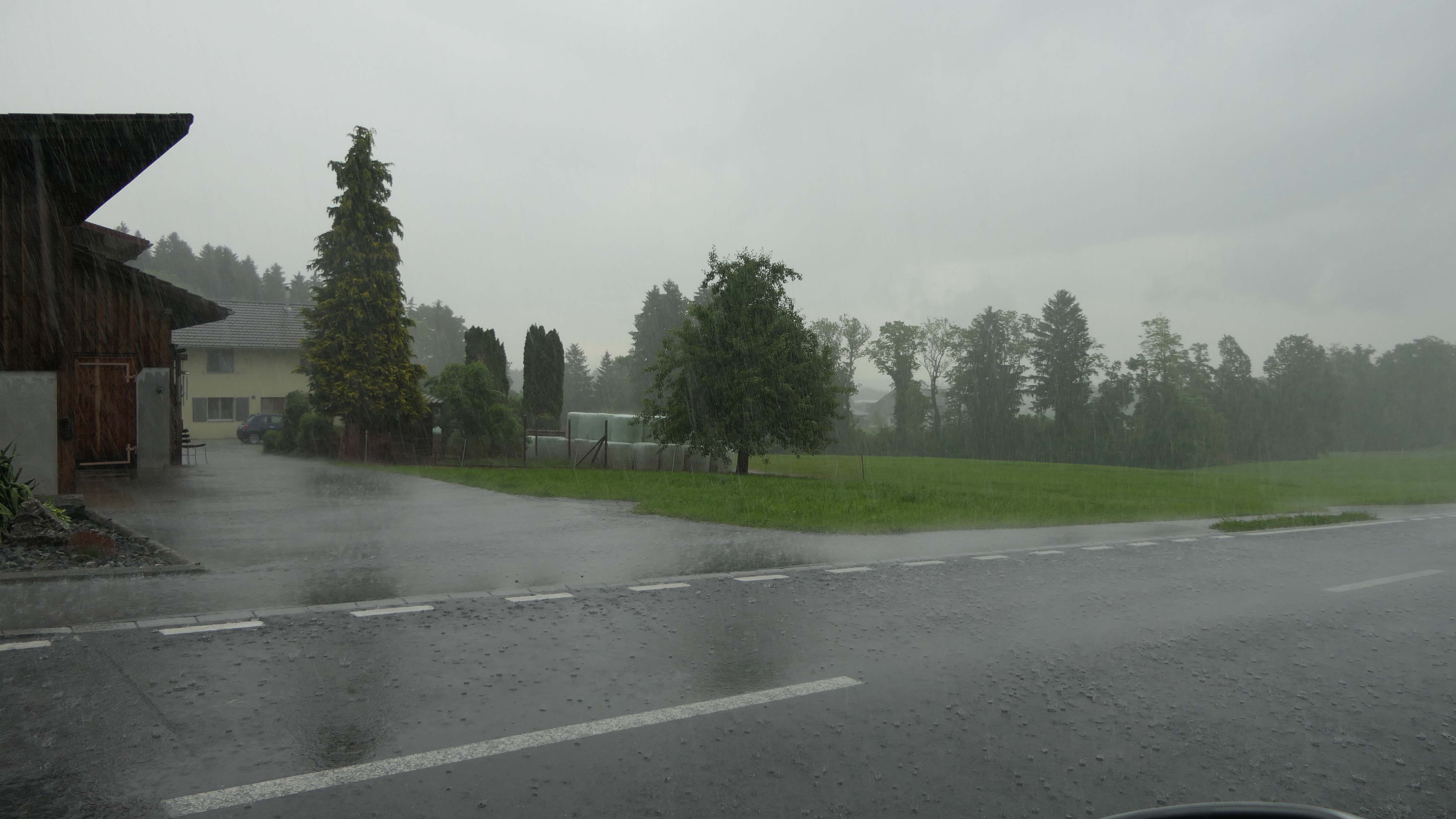 Etwas weiter beim Bauerhof Neuheim. Es regnet nicht mehr ganz so intensiv.