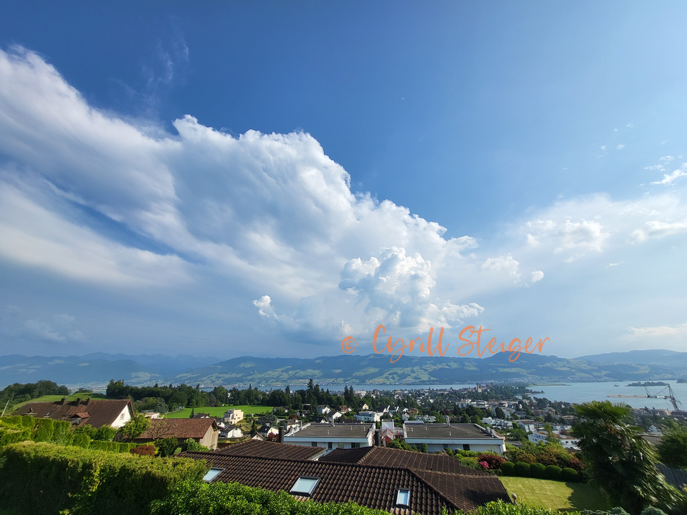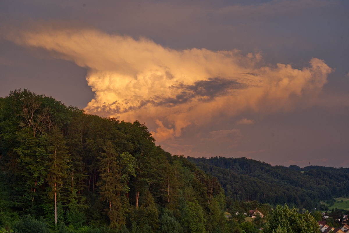 Ja, Deine Animation zeigt ja in den nördlichen Voralpen der Schweiz ein eher seltenes Phänomen NW > SE, Staulage, mit orografisch unterstützter Hebung entlang einer beinahe quasistationären Linie. Bei der es immer wieder brodelte und brodelte..... als ich in der "Frohburg" hoch über Rapperswil ankam; als ich mit einem Pouletspiess auf heissem Stein versuchte die Konvektion zu unterstützen - was kläglich scheiterte