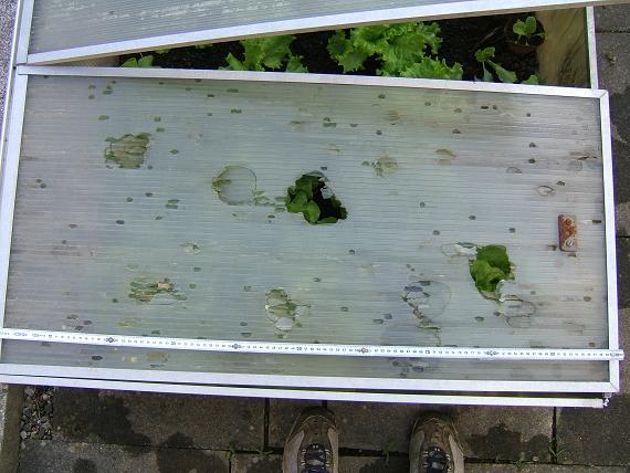 Habe heute einmal unser Treibbeet, das seit dem Juli 1999 in 2 Abdeckungen, die wir damals eingebaut hatten,Lüftungslöcher erhalten hat.