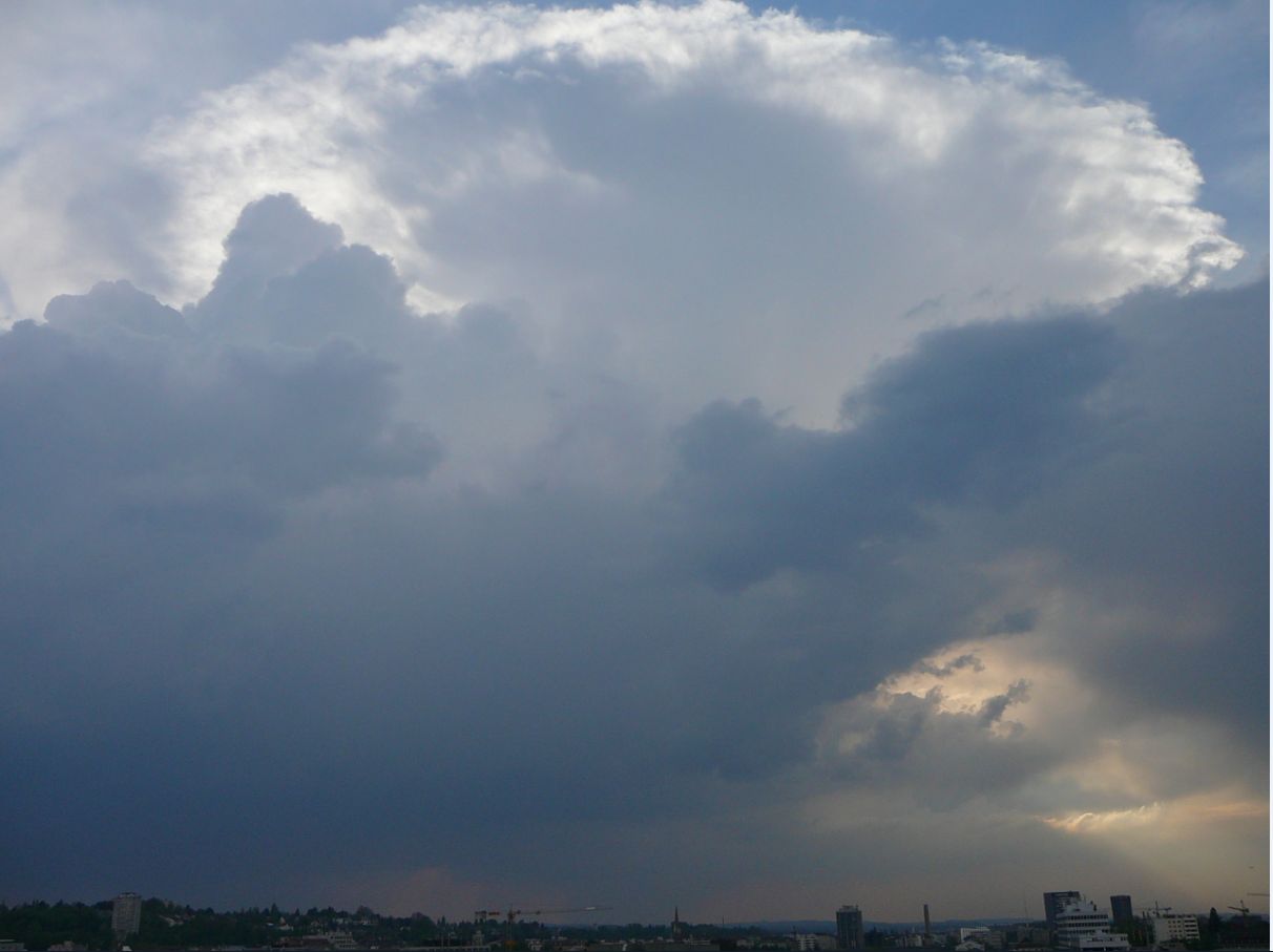 Eigentlich schon recht toll meine Aussicht. Nach Radar und Satellitenbild sehe ich die Zelle(n) am Nordrand der Schweiz richtig schön durchs Fenster