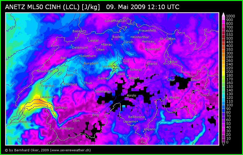 Über dem Mittelland ist der Deckel wohl zu gross als dass es thermisch auslösen könnte.