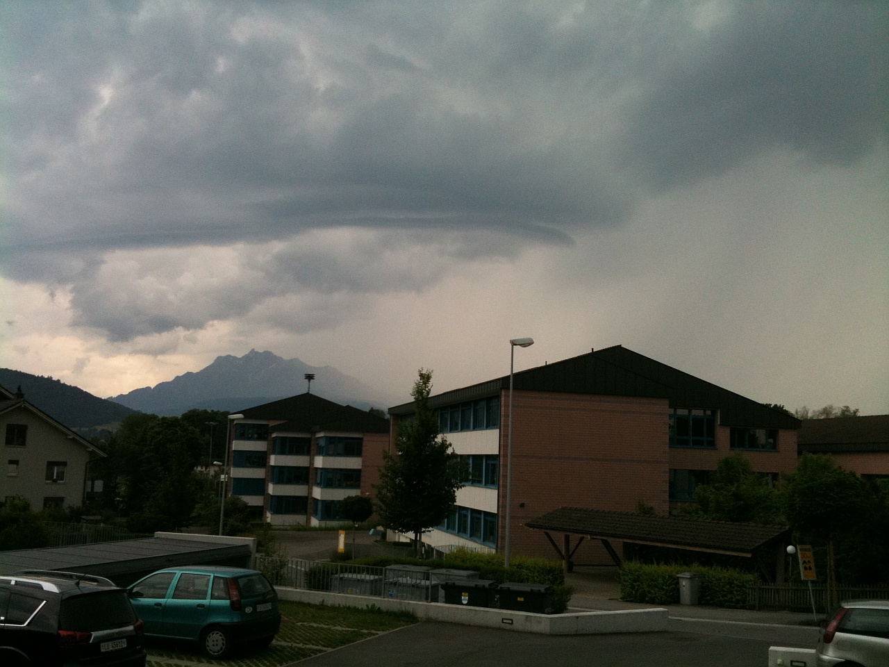 Bin gerade zurück aus Luzern, wo es bereits vor 40 Minuten kurz getröpfelt hatte. Die Entlebucher Zelle zerfiel in zwei Teile, der nördliche Teil frass sich bis zum Sempachersee durch ehe er starb, der südliche Teil steht kurz vor den Toren Luzerns. Aktuell in Buchrain - wenig nordöstlich von Luzern - leichter Regen, jedoch eher aus Einheitsgrau und seit einigen Minuten wieder komplett ohne Blitz und Donner. Vermutlich zur Sau gemacht durch mässigen Outflow. Also eher ein Vorgeschmack dessen, was dann mit der Kaltfront nachrücken könnte.