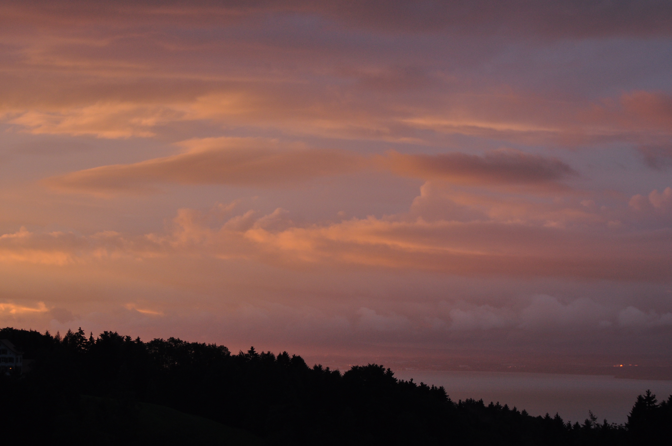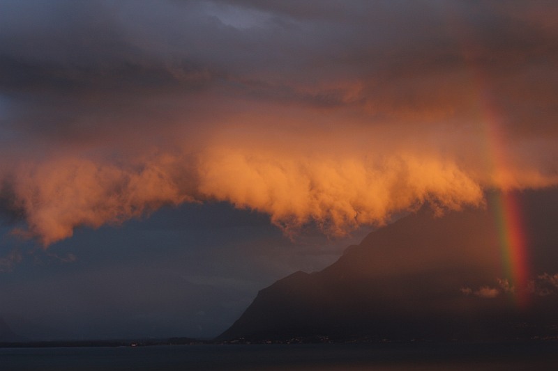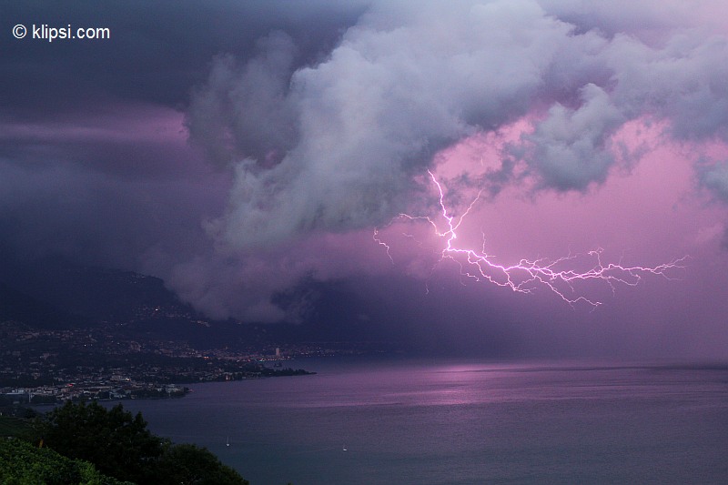 fuhr per SBB nach Vevey, verbrachte den ganzen Nachmittag am Genfersee, hoffte auf Wasserhose, aber ohne Erfolg. Dennoch schoene Stimmung. Viele aufsteigende Scuds, dann Regenbogen, und noch ein toller Blitz.