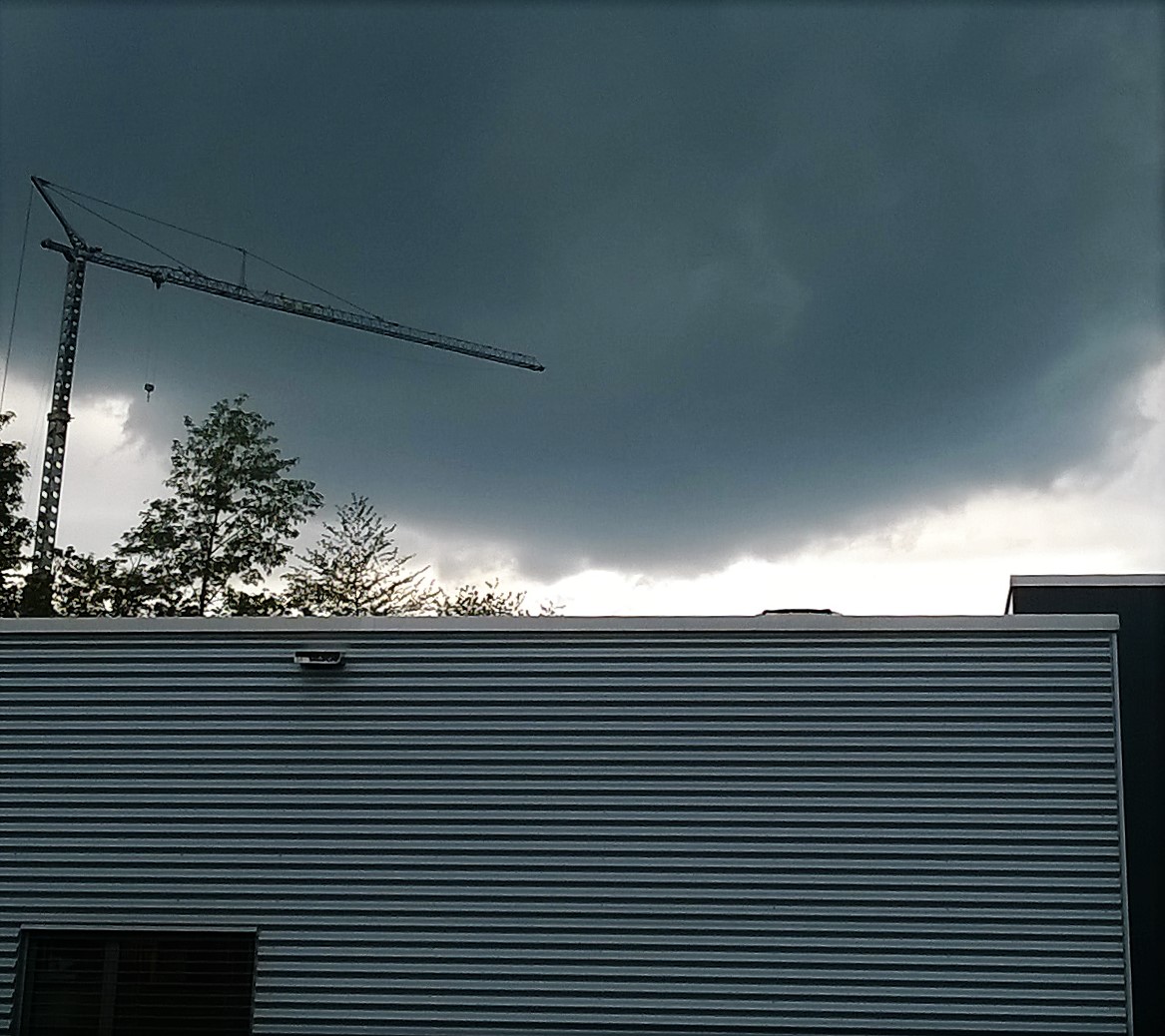 Heute war für mich wieder einmal eine Art Highlight der diesjährigen Gewittersaison, denn es ereignete sich die seltene Gelegenheit, bei der Geburt einer Zelle dabei zu sein. Zuvor fuhr ich im Schritttempo vom Kreisel in Embrach, bis zum Migros in Pfungen und dieser Megastau ging ja noch weiter, bis nach Winterthur Wülflingen. Doch ich blieb in Pfungen, wo sich praktisch ¨über dem Einkaufszentrum eine neue Zelle bildete, die Niederschlag produzierte, der auf dem Donnerradar noch nicht zu sehen war, wegen der ca. 4-minütigen Verzögerung.