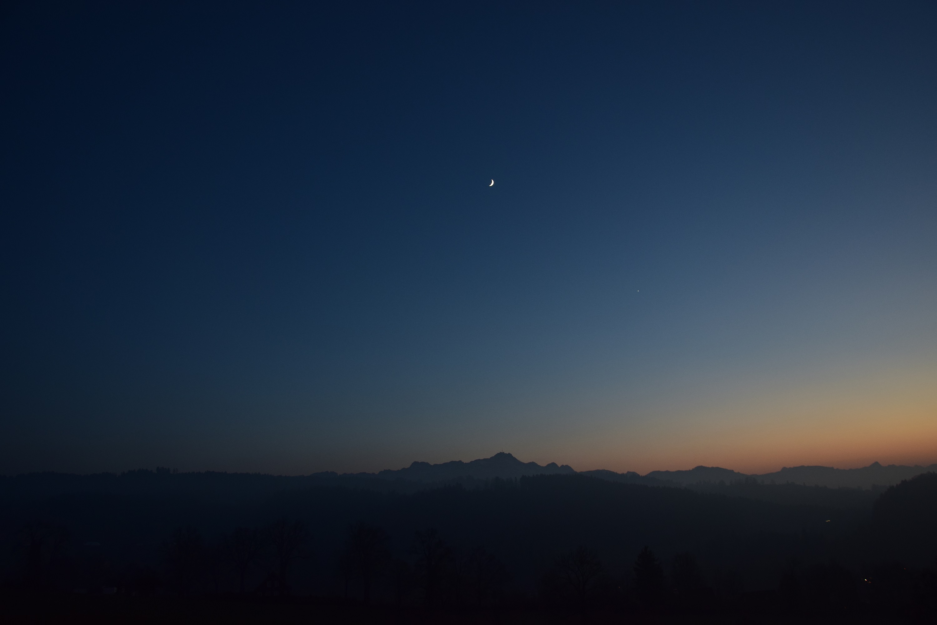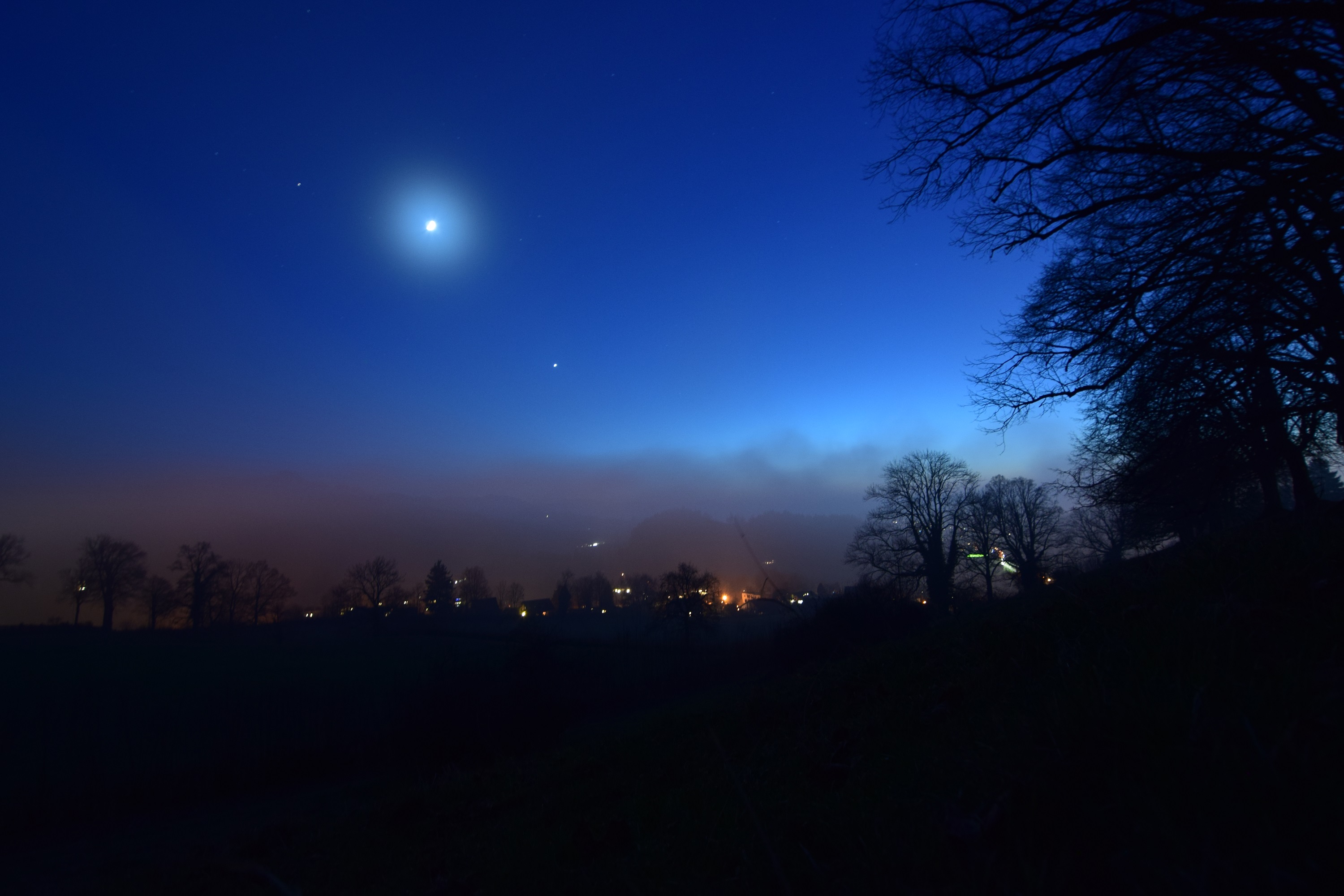 Eigentlich fuhr ich auf den Hügel bei St. Gallen um den Sonnenuntergang und die Sterne zu fotographieren, aber der Nebel machte den Sternen einen Strich durch die Rechnung