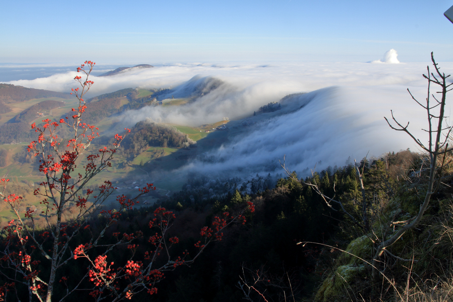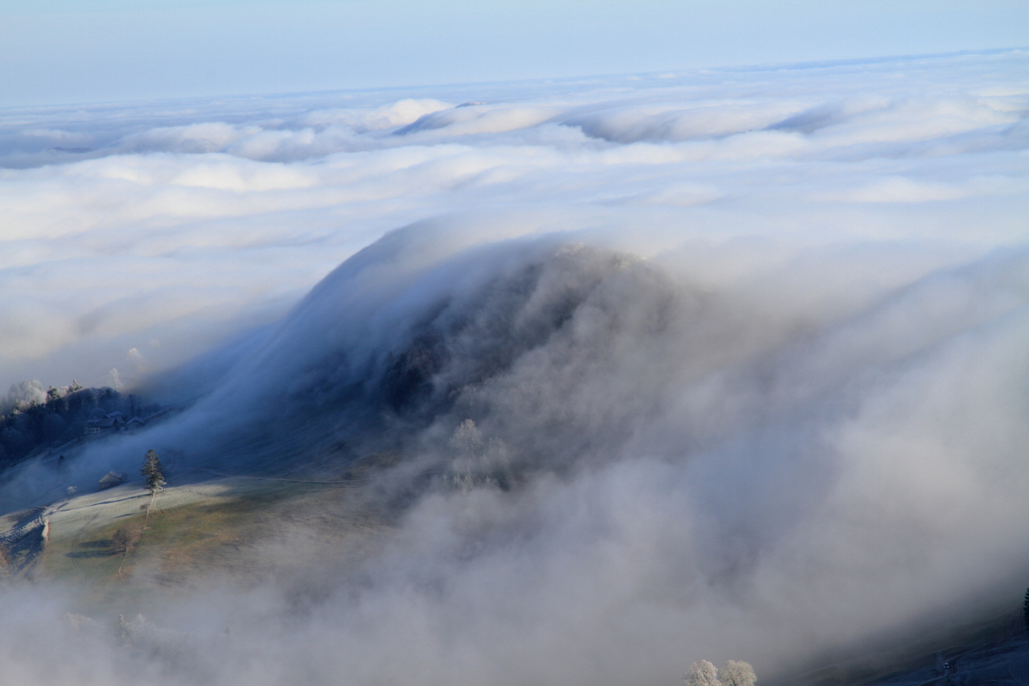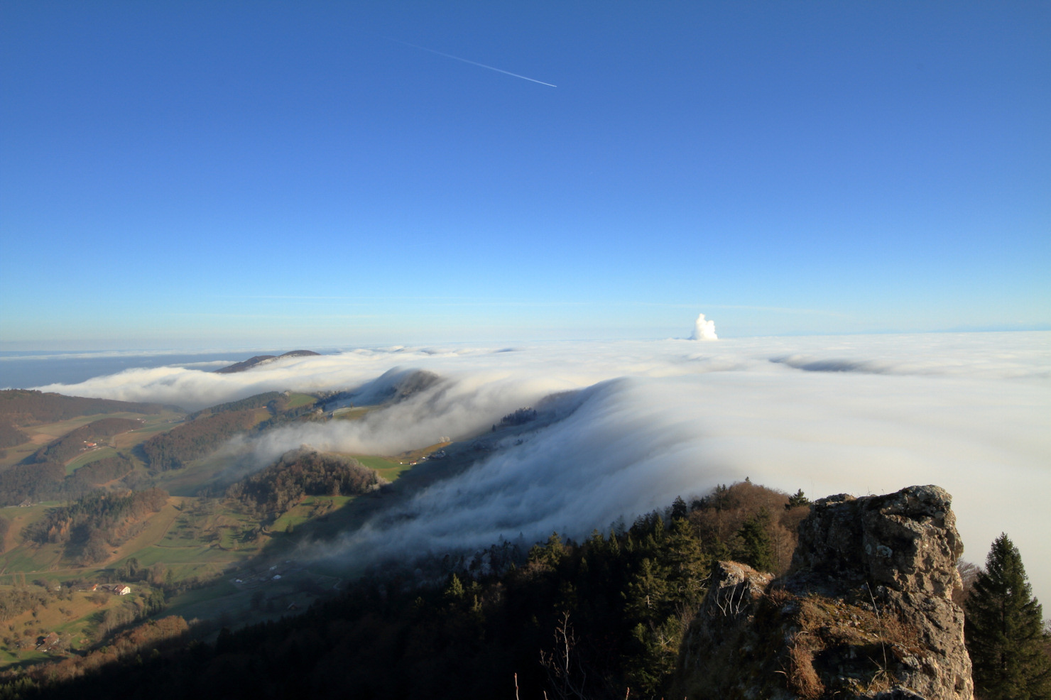 Schön hat man das Überschappen des Nebel vom Aaretal über die Jurakette beobachten können...am Nachmittag war dann auf einmal fertig...evtl. könnte eine Winddreher den Spielverderber sein?