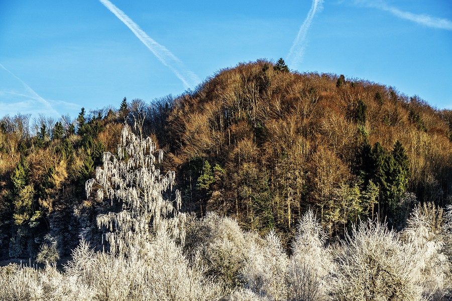 Das Bäumchen hat vermutlich bereits am Vortag einen "Reifschatten" konstruiert und wurde dann auf heute konserviert: