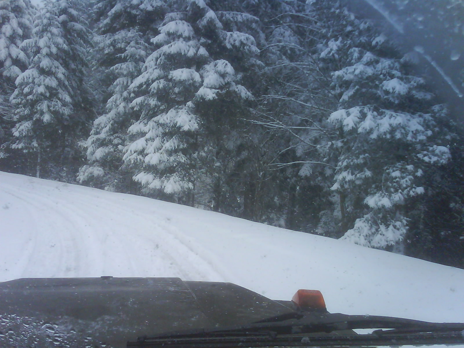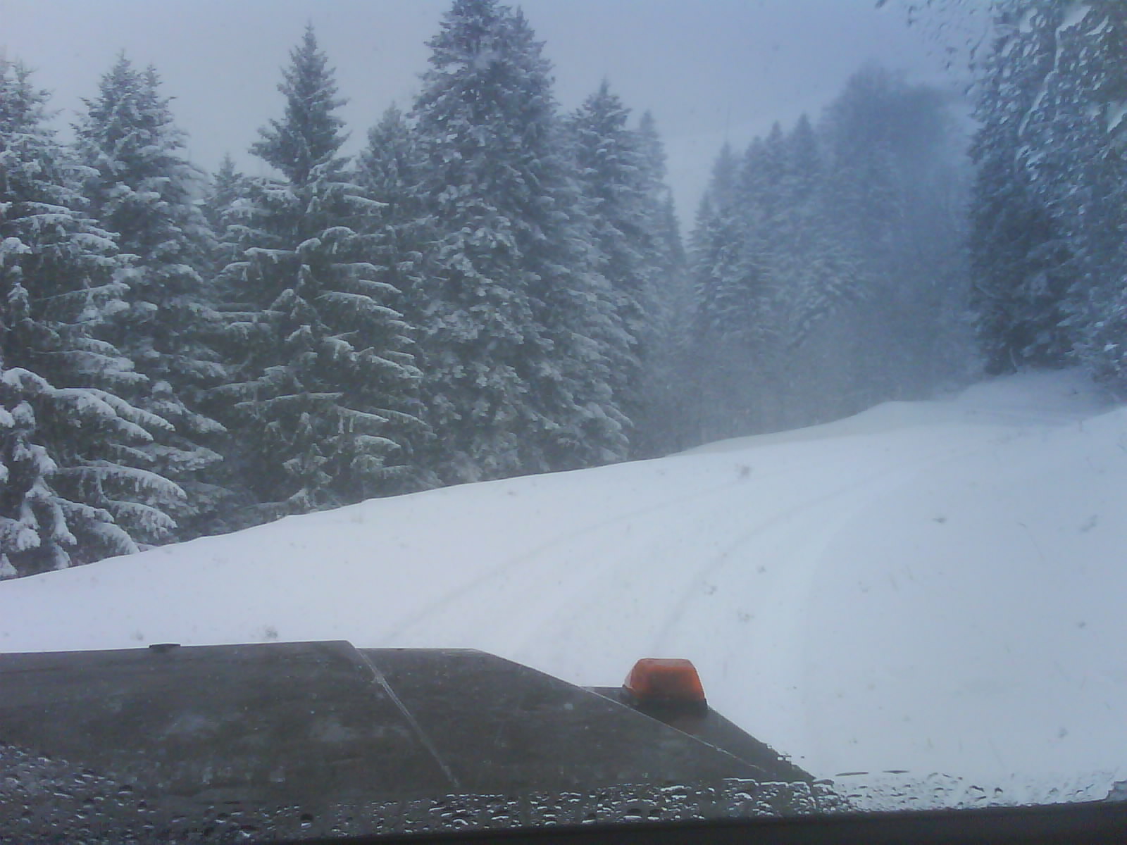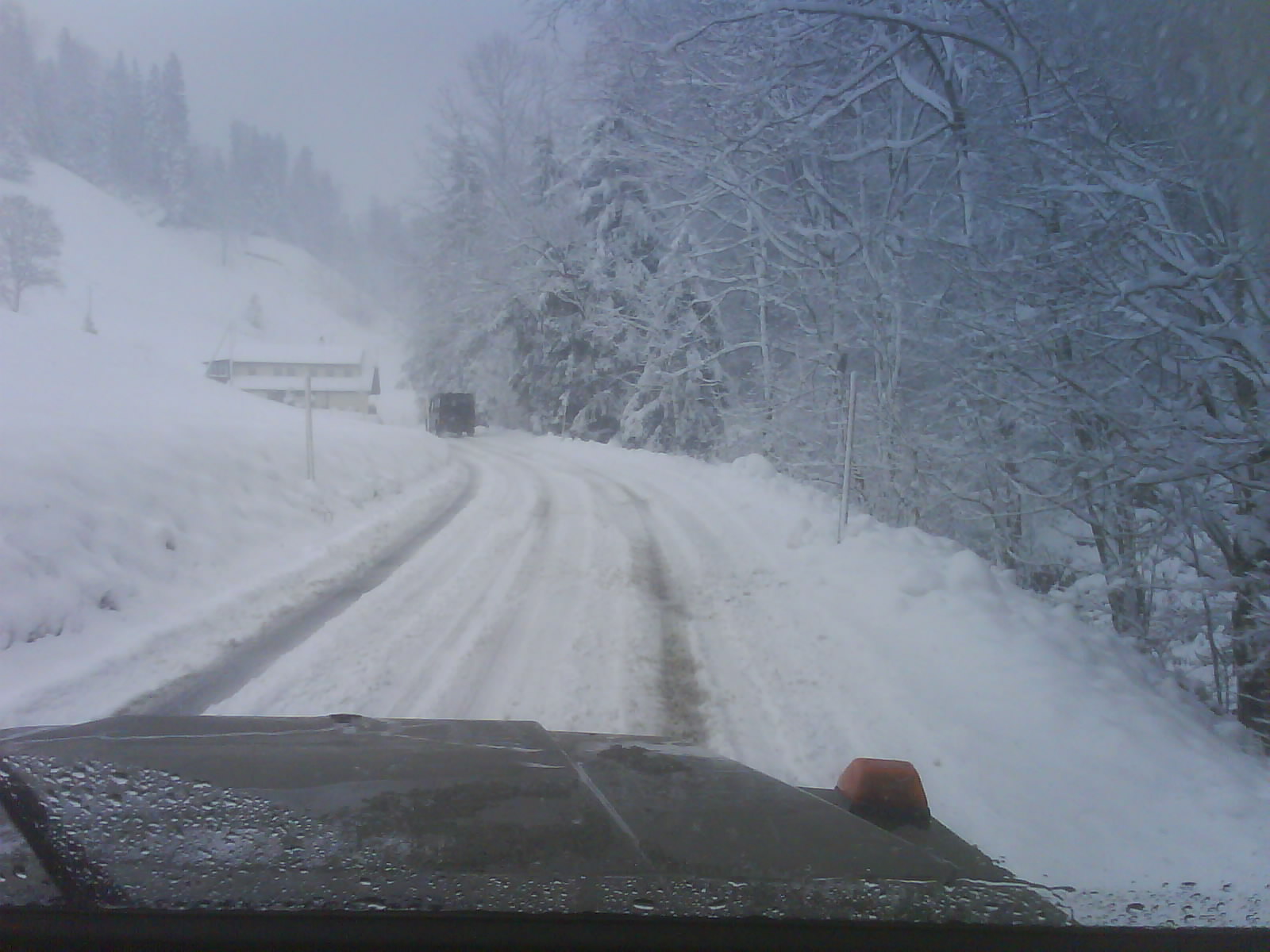Dann kurz nach Wasen kamen wir das erste mal in Schlidderstress. Kein Wunder bei 15cm Schnee auf der Strasse: