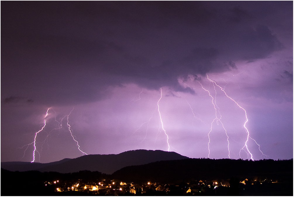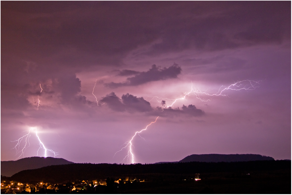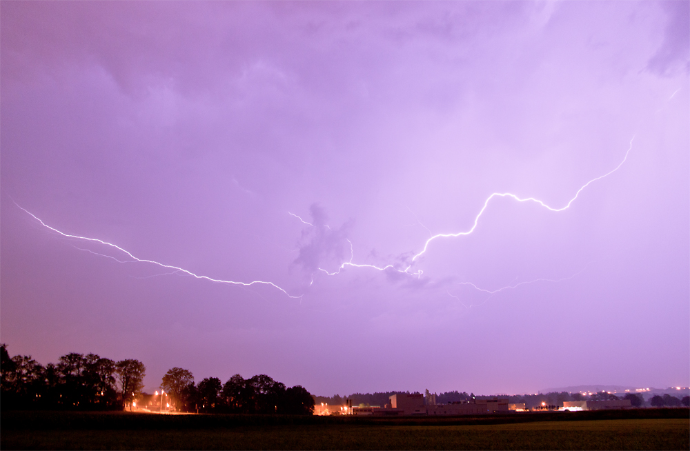 ). Nach anstrengender Spätschicht (Zürifäscht + Gewitter = Telefonterror) versuchte ich total auf den Felgen die erste Zelle bei Eglisau (welche sich später zu dieser langen Linie ausbildete) zu chasen. Kaum ab der Autobahn bei Andelfingen, habe ich mich allerdings total im Kraut verfahren. Jedenfalls schlechte Idee in diesem Zustand; die Devise war nix wie heim. Daheim dann entfernte Blitze und Donnergrollen Richtung Westen und später Süden (Uster). Hier meine magere Ausbeute. Bin schon einigermassen zufrieden, wenigstens wieder mal ein paar Blitze aus der Ferne mitbekommen zu haben.