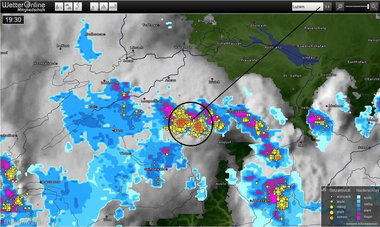 Da erreichte mich die Meldung von 5 cm Hagel von Marbach:
