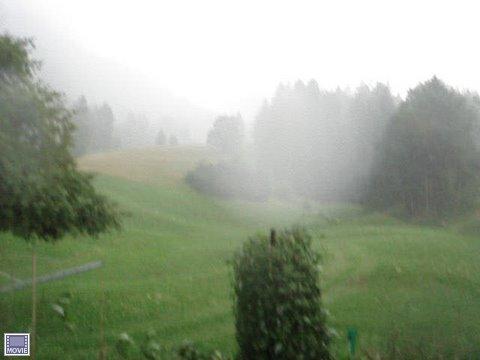 Ich erwartete eigentlich, dass sich das Ganze in der südlichen Strömung ins Mittelland verlagern würde. Erst auf dem Radar zu Hause habe ich gesehen, dass sich das ganze wie Popcorn den Voralpen entlang geschlichen hat, und sich die Ausläufer sich im Mittelland ausregneten. So begab ich mich nach der Raststätte Gruyere (unterhalb an der Hauptstrasse). So siehst von aussen aus, wenn man ins Dunkle schaut: