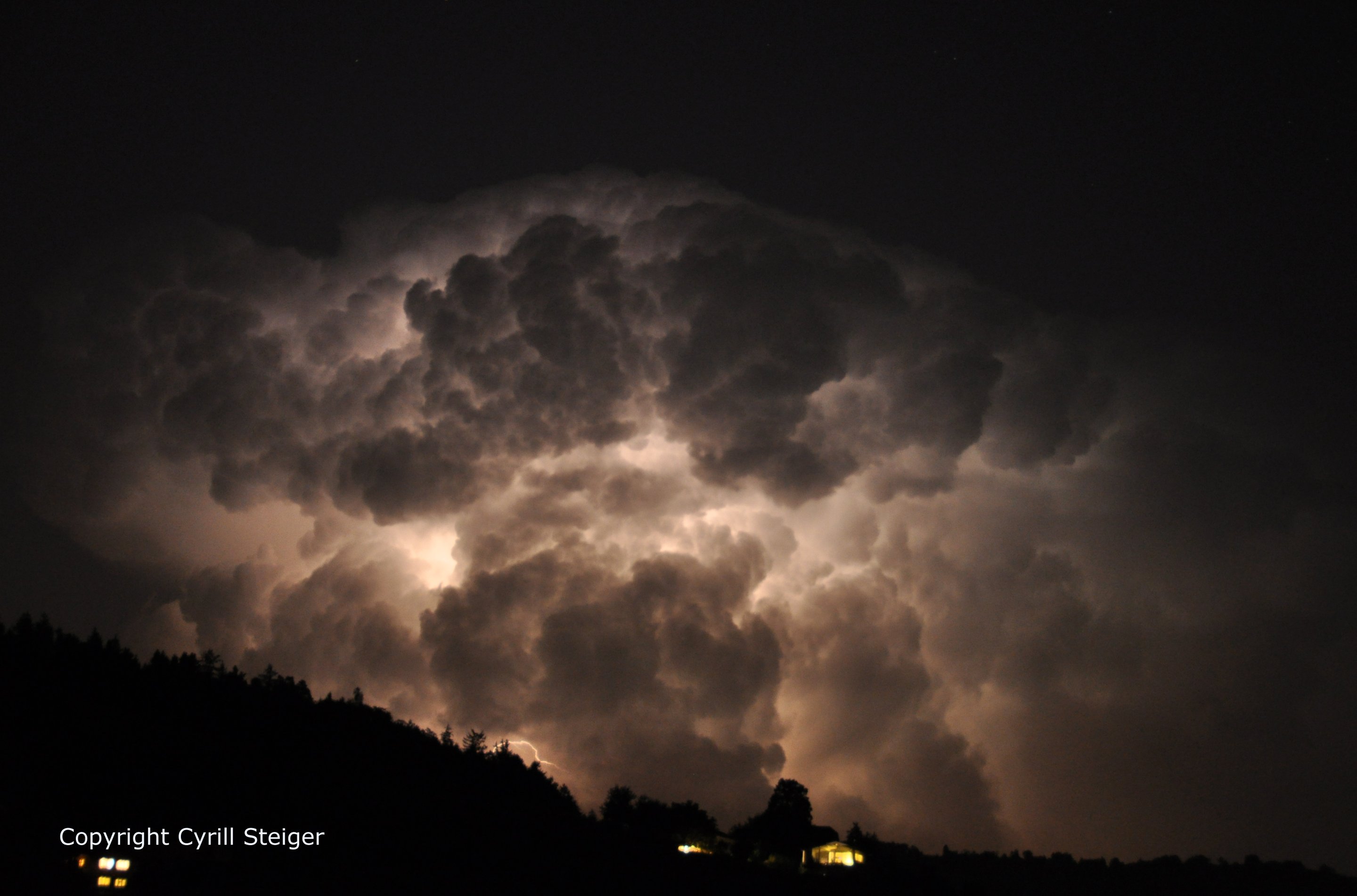 Die viele Fotos sind alle super schön - von Bubikon aus habe ich auch um zwischen ca. 23:45 und 00:15 Richtung Bachtel einige Aufnahmen geschnappt. Ganz komisch - wenig Donner und nur tropfenweise Regen - und gleichzeitig waren auch die Sterne zu sehen !