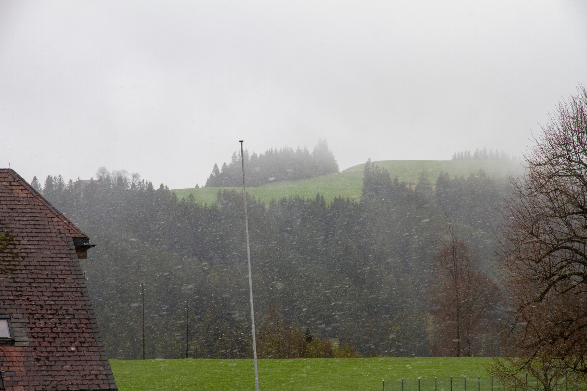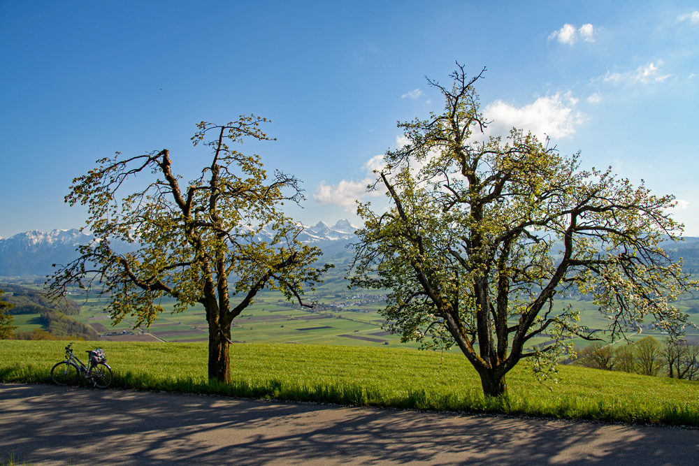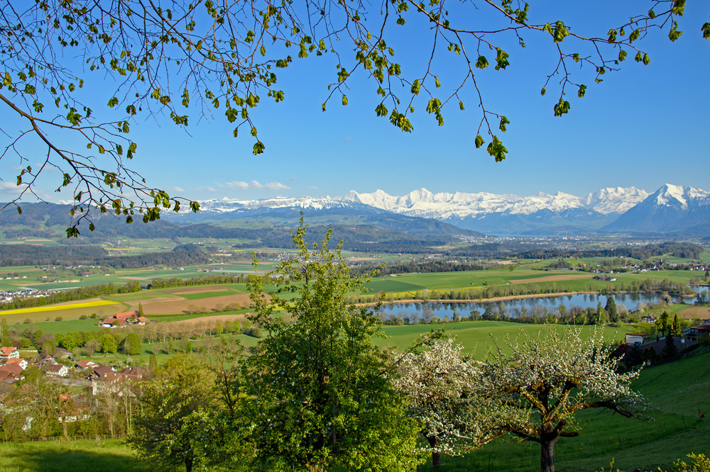 Kirsche und Birne sind am verblühen, und der Gantrisch ist schon wieder frisch eingeschneit: