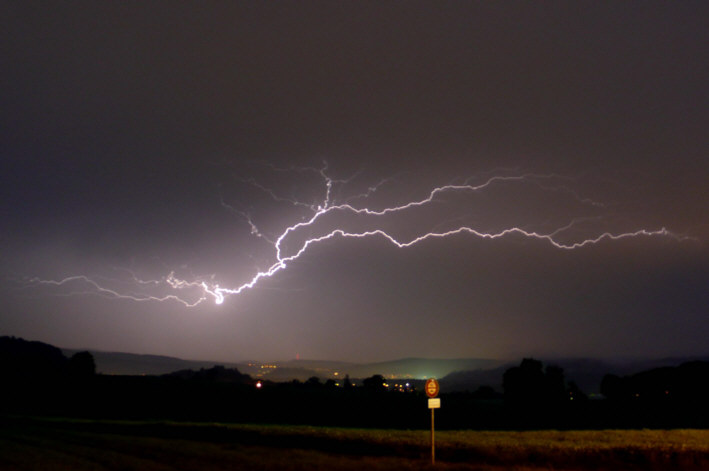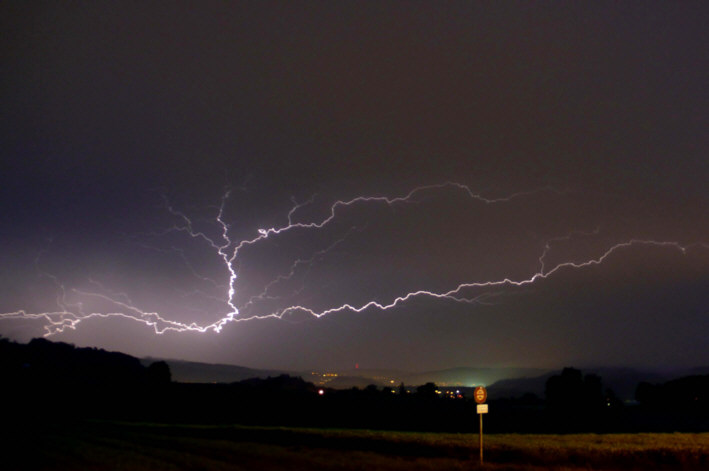 Das war ein schönes Feuerwerk! :O Um 22 Uhr kam die grösste Gewitterzelle direkt zu mir. Nach 5 Minuten fahren hatte ich einen optimalen Standort mit Blick auf das Gewitter. Am Schluss wurde der runde regelmässige Rand des Hutes vom Cumulonimbus noch gut sichtbar. Daneben war klarer Sternenhimmel. ;-) ;-) ;-)