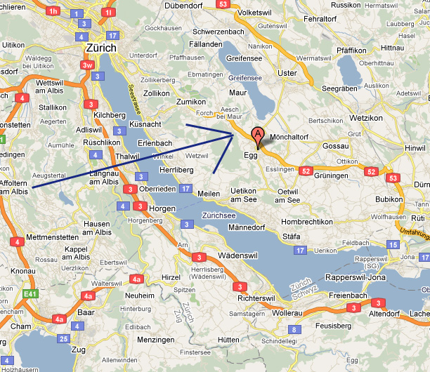 Das ist durchaus möglich. Der Zellkern zog ja nördlich von mir vorbei. Dass es bsp. in Thalwil oder Küsnacht gehagelt hat, könnte ich mir durchaus vorstellen – nur habe ich davon keine Kenntnis. Egg liegt genau auf der Zugrichtung des Kerns. Auch dort ist Hagel also absolut plausibel. Stäfa und Männedorf liegen aber weiter südlich.