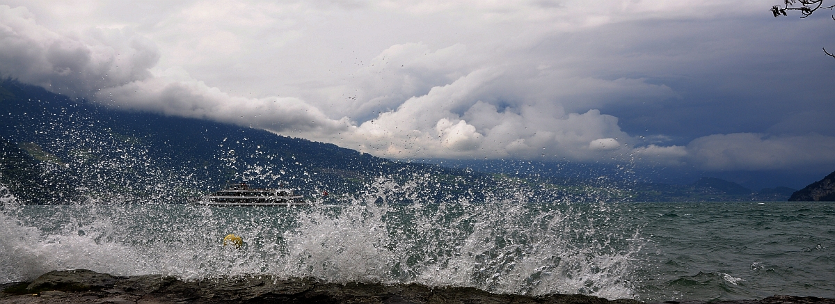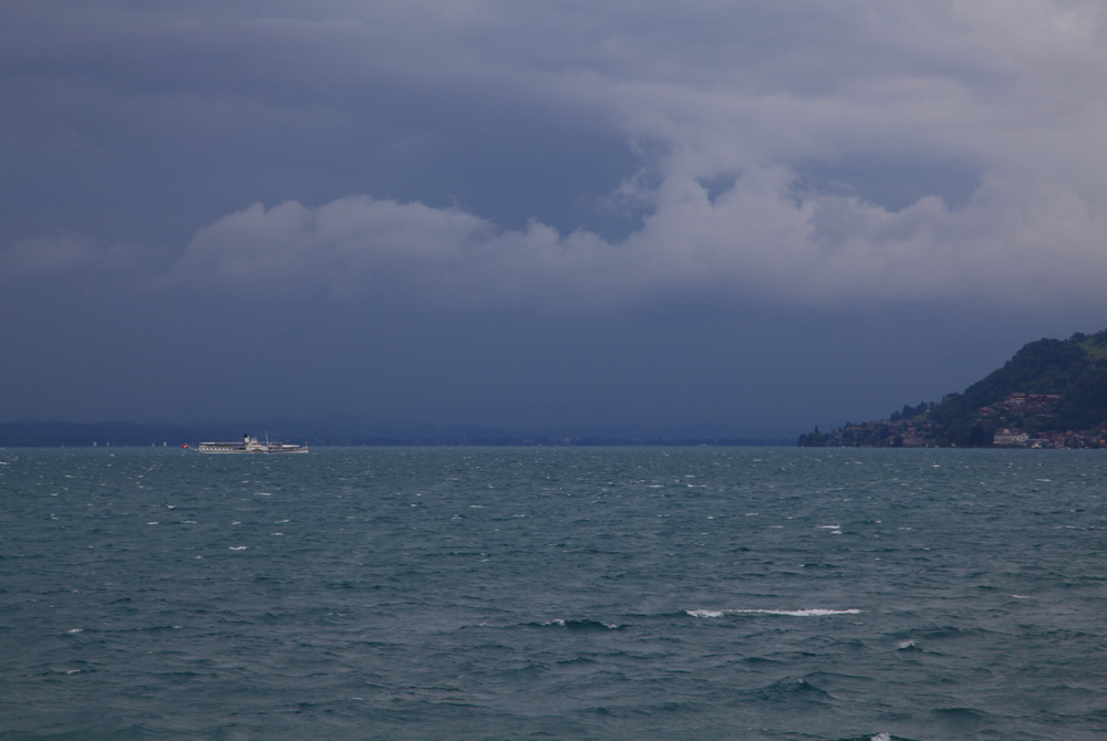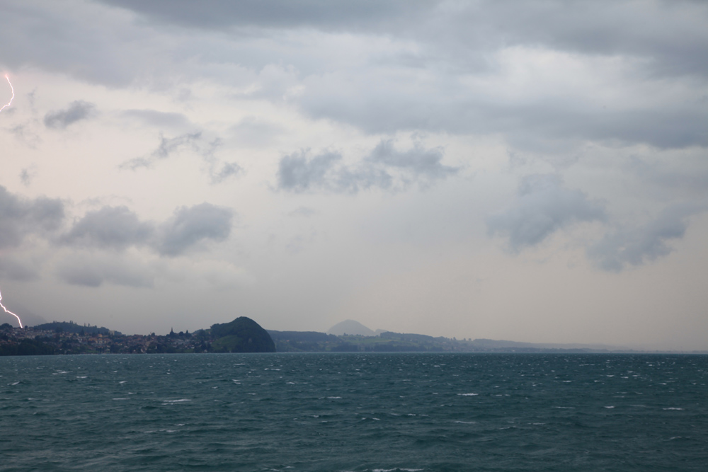 Kurz später fuhren wir zu der Talstation des Beatenbergs, wo wir uns eine bessere Sicht auf das kommende Gewitter erhofften. Der Wind war ziemlich zügig und das Ganze schien auf uns zuzukommen. Erste Blitze wurden sichtbar. Die Stimmung war super. Leider war es mir nicht vergönnt, einen Blitz in voller Pracht zu fotografieren: