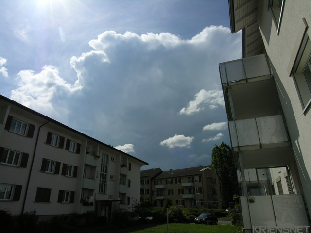 Auch vom Büro aus lässt sich chasen. Kamera fix montiert, gestartet und fertig. Der folgende Film umfasst etwa 3 Stunden, ca. 12-17h mit Lücken, gekürzt auf 2 min. Zunächst Wolken-Zeitraffer in verschiedenen Stadien. Der Anbau im Osten des Napf-Clusters passte sehr gut in den Bildwinkel, Richtung SW, Standort Aeugst am Albis. Dann einige Impressionen nach Hagelbeginn, ca. 1650-1705 Uhr.