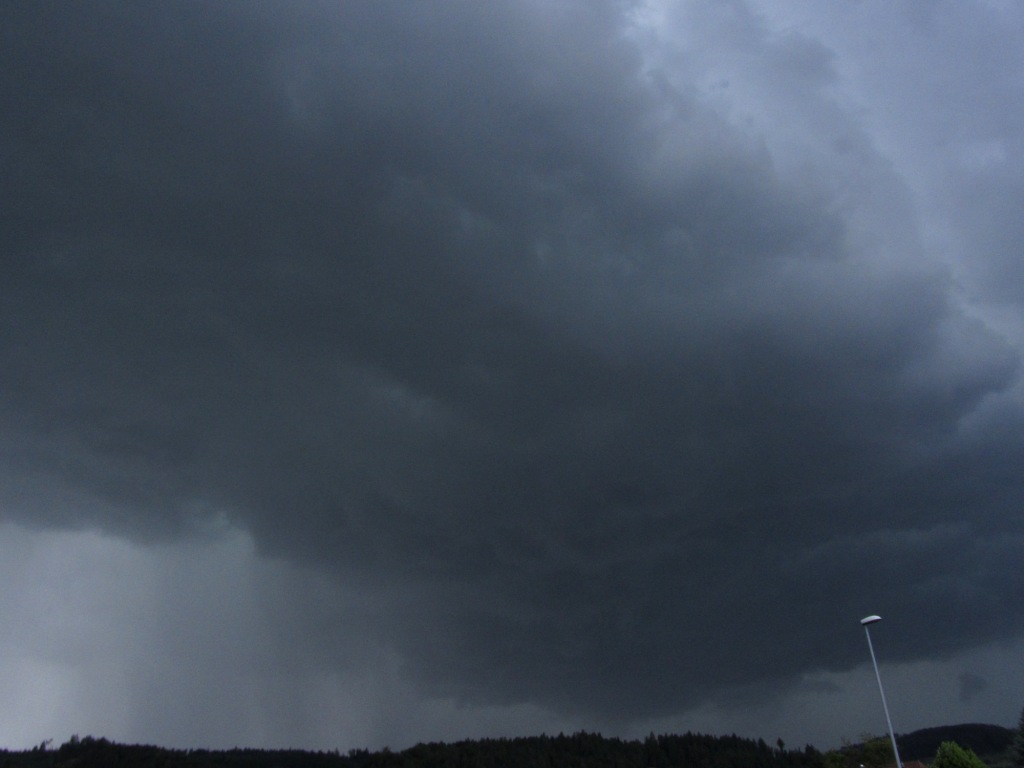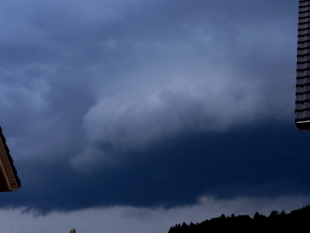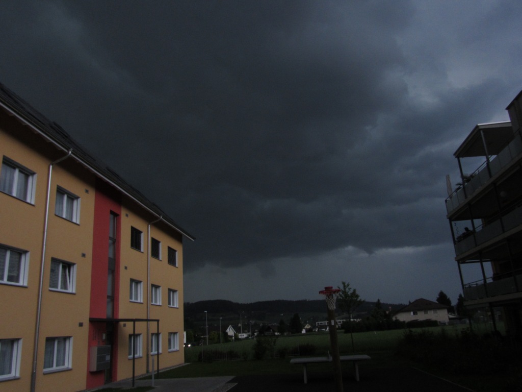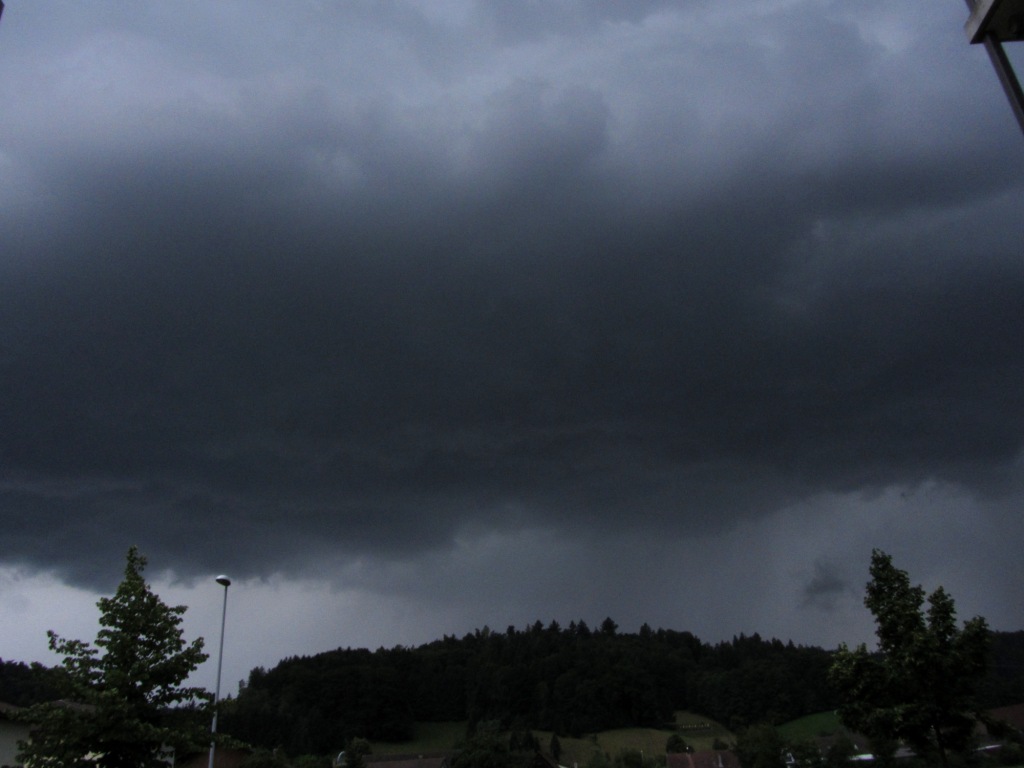 Danach war bis 19:30 Uhr nichts, ausser Sonneneinstrahlung. Dann verdunkelte sich der Himmel und von Westen her zog eine art Shelfcloud auf: