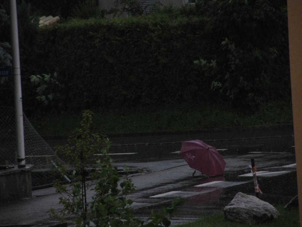 Die Böen waren ca um die 100km/h! Links im Bild ist der umgewindete Metallzaun zu sehen! Er wurde wie Plastik AUSGERISSEN!!! Ausserdem Regnete es so stark, dass man noch ca. 3 Meter sicht hatte!