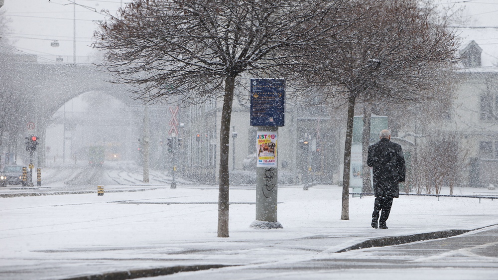 Schneeschauer morgens um 10h bei der Heuwaage Basel.