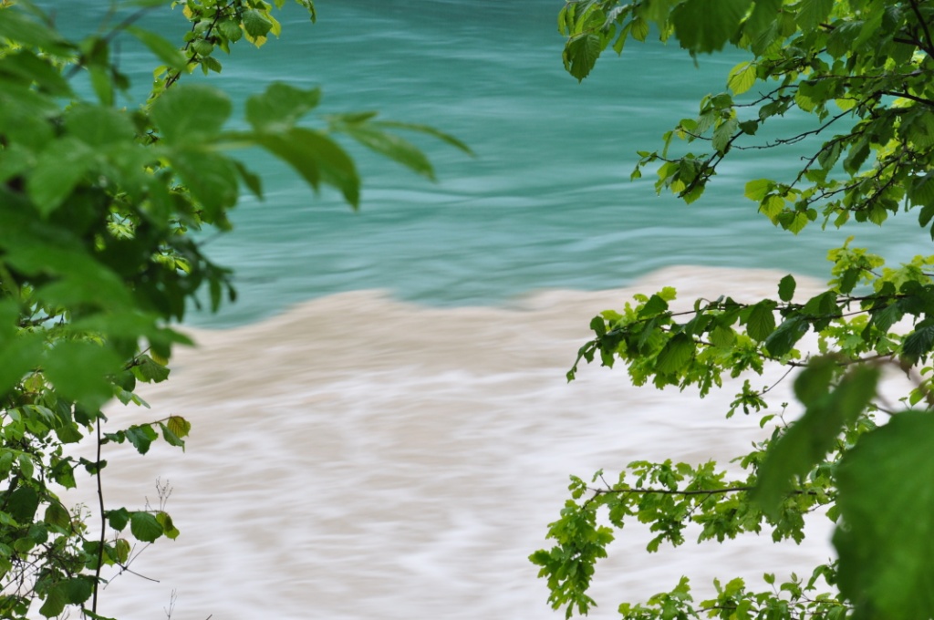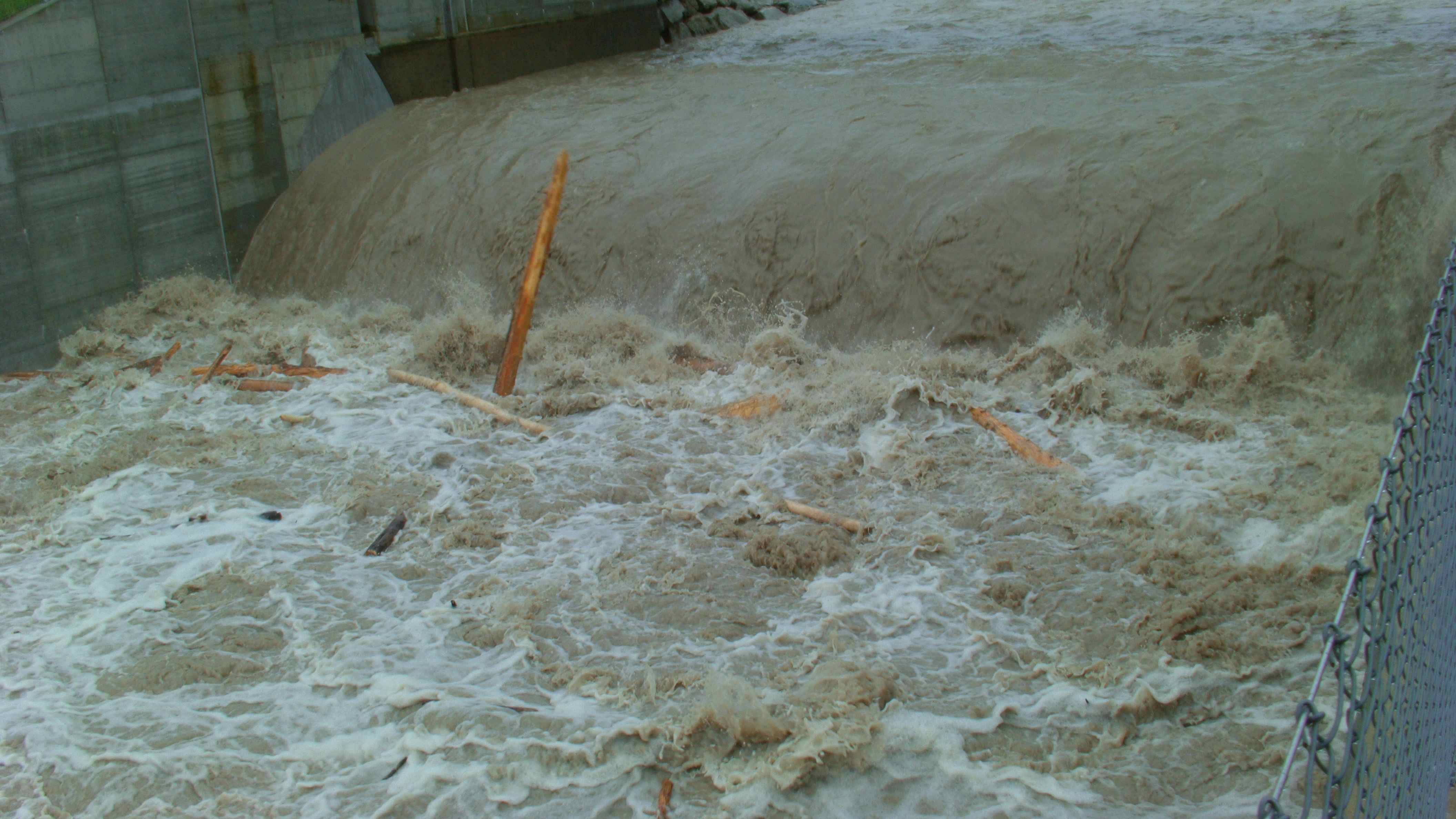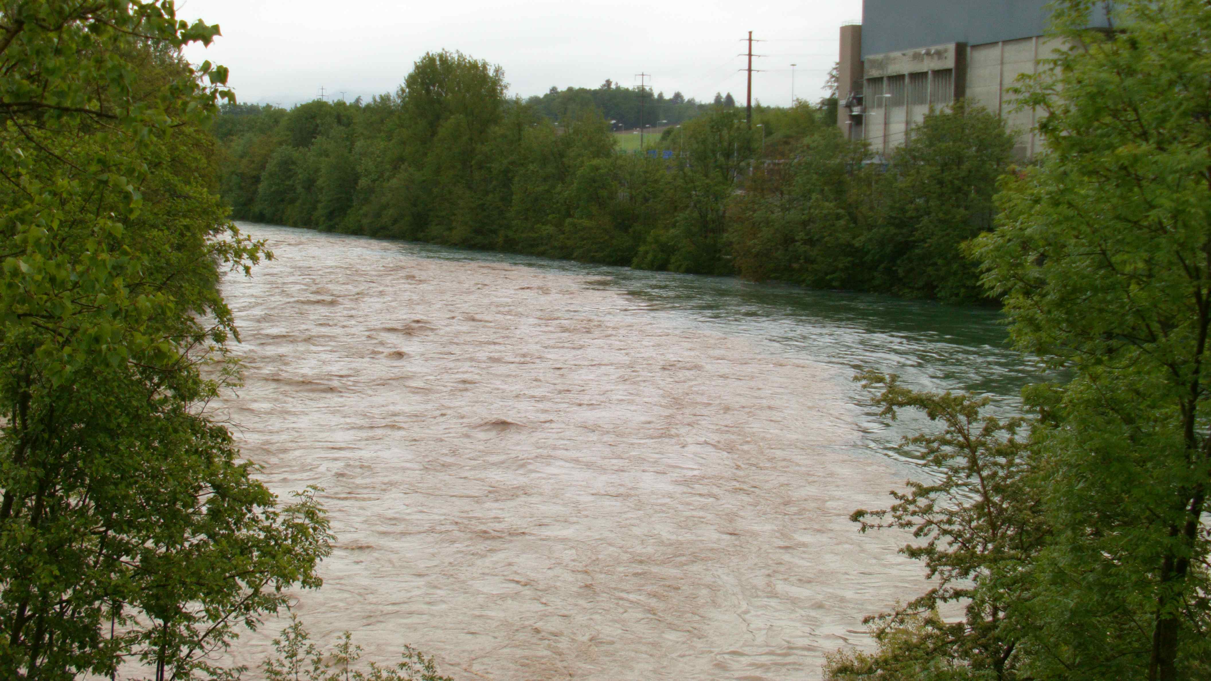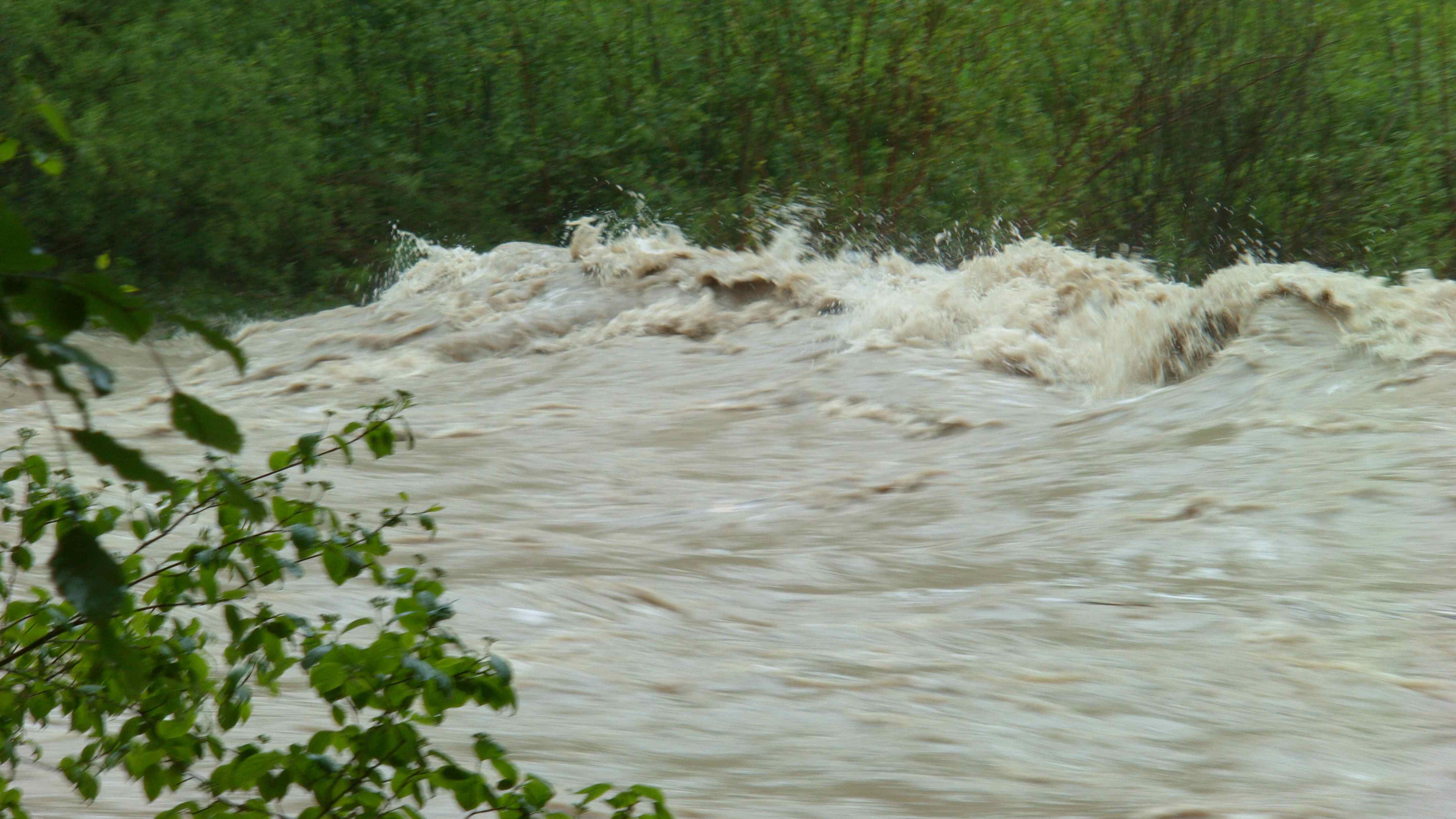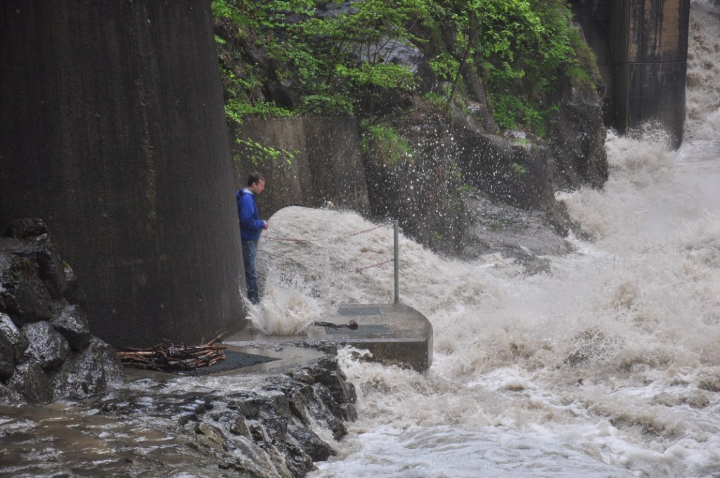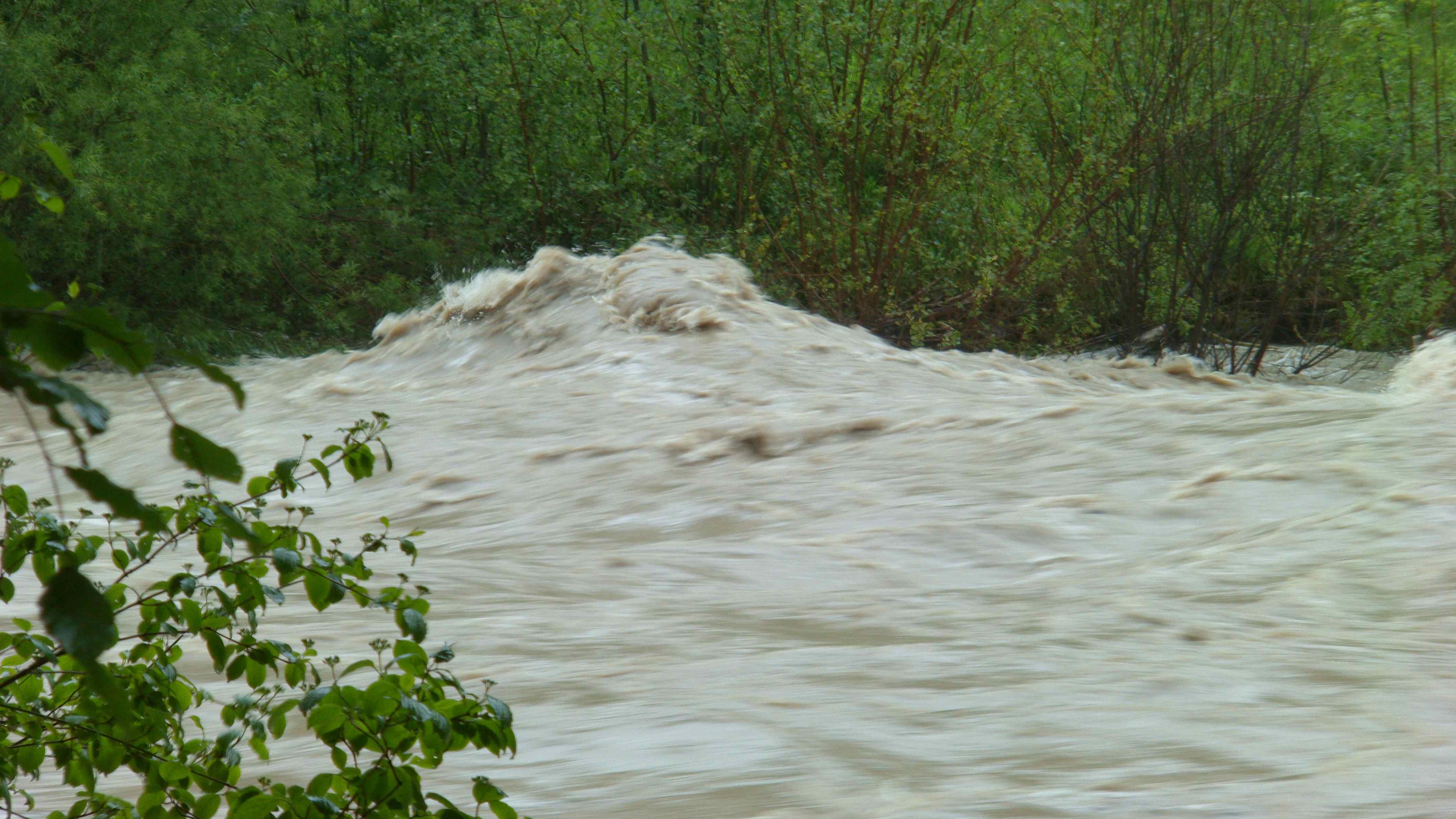 Sehr eindrücklich die Simme, selbst kurz nach dem Peak mit ca. 130 m^3/s: