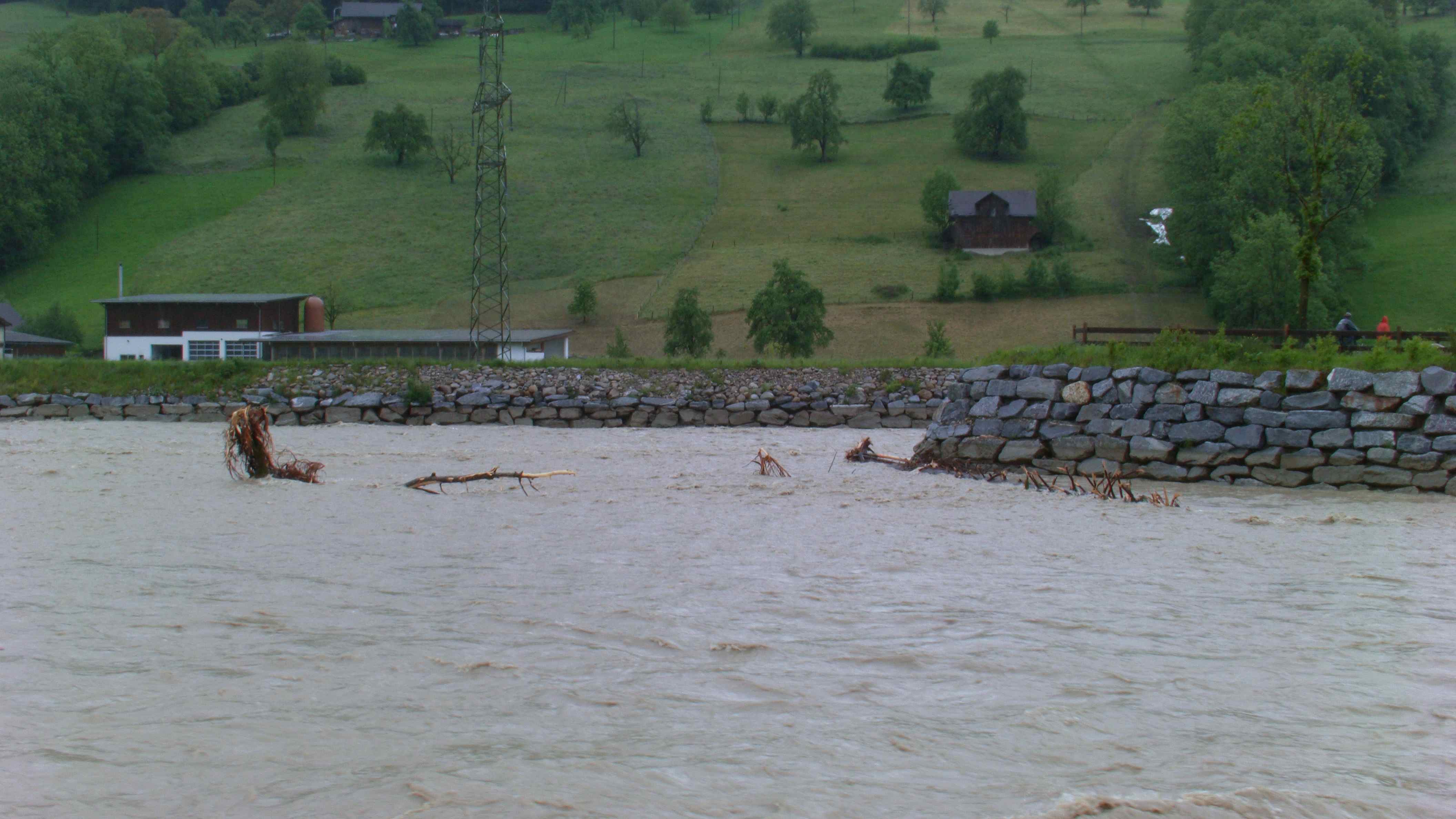 Oberhalb dieses Wehrs sind ein paar gestrandete Bäume aus dem Entlebuch. Der Baum links wurde soeben angeschwemmt, ich konnte zuschauen.