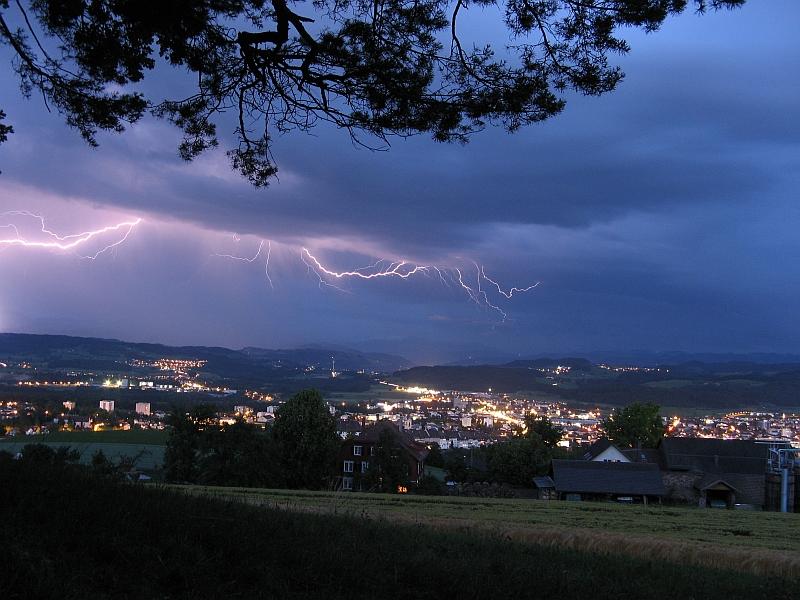 @ all: tolle Blitzbilder. Ich hab heute auch mal versucht meine ersten Blitzfotos zu machen. Bis ich aber mit dem Velo auf dem Hügel war, hatte sich die Blitzaktivität schon stark verringert. Dadurch war es schwierig, überhaupt einen zu treffen (kann höchstens 15s lang belichten). Naja, sollte das nächste Mal vielleicht das Auto nehmen