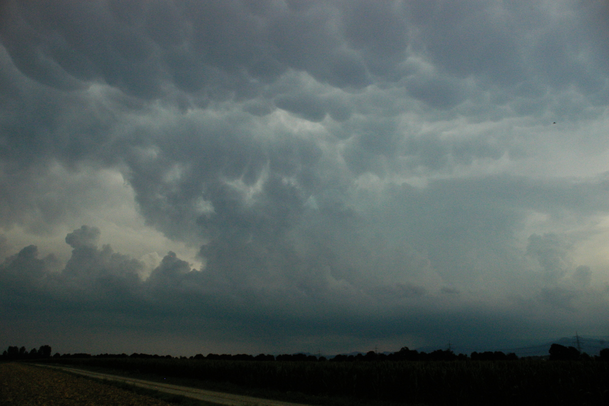 Also hielt ich Ausschau auf die nächsten Zellen, geplant war die Tour via Thun-Brünig-Innerschweiz-Ostschweiz fortzusetzen. Nach kurzer Absprache mit Grafur (herzlichen Dank an dieser Stelle) wollte ich auch so meine Route in Angriff nehmen und hätte den Hagelschlag in Thun mitbekommen. Warum rede ich hier im Konjunktiv? Als ich wieder Zugriff auf die Satellitenbilder hatte, erblickte ich eine sehr aktive Zelle im Emmental/Entlebuch. Mit den hohen Temperaturen und Taupunkten glaubte ich, dass sie ihren Weg Richtung Luzern bahnen wird. Nach kurzem Telefonkontakt mit Crosley machte ich mich auf den Weg Richtung Hildisrieden (Sempach). Auf der Autobahn zeichneten sich ab der Ausfahrt Kirchberg viele Mammati am Himmel ab: