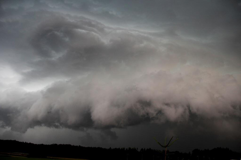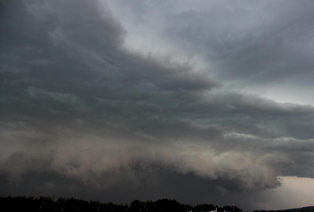 Zuerst der Aufzug der Superzelle und dann der Zellzusammenschluss mit Microburst (?) direkt über der Stadt. Bilder und Videomaterial folgen vermutlich morgen.