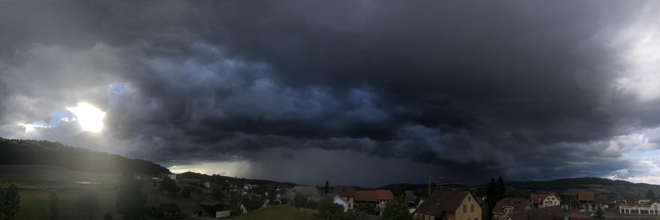 Ja, der Aufzug mit dem Shelfcloud sah äusserst bedrohlich aus bevor ich ganz knapp rechtzeitig Schutz in Seuzach finden konnte.